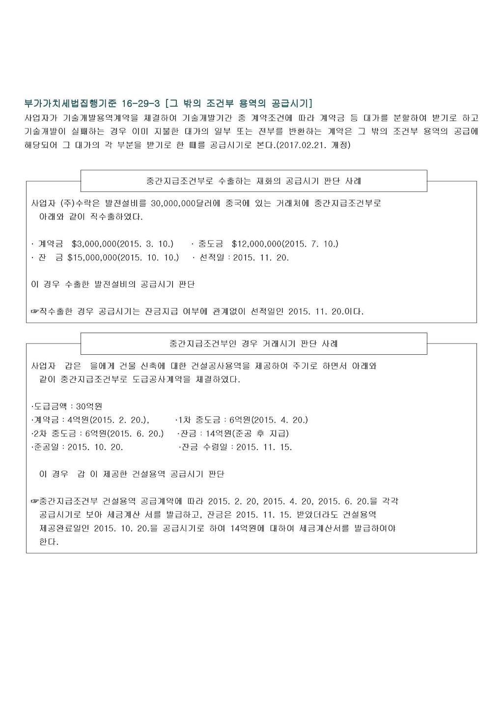 부가가치세법집행기준 16-29-1 [완성도기준지급조건부 용역의 공급시기 사례]