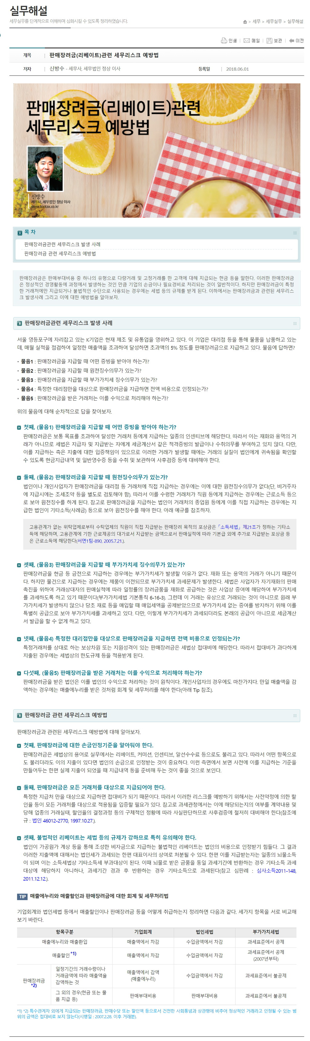 따라 판매장려금도 법인세법상 매출에누리에 준하여 처리하게 된다.