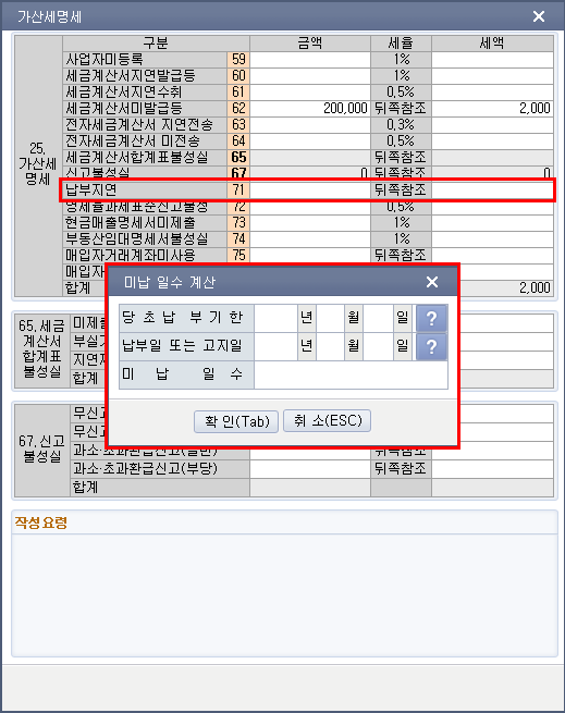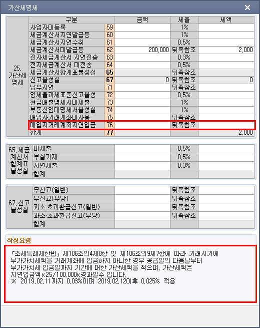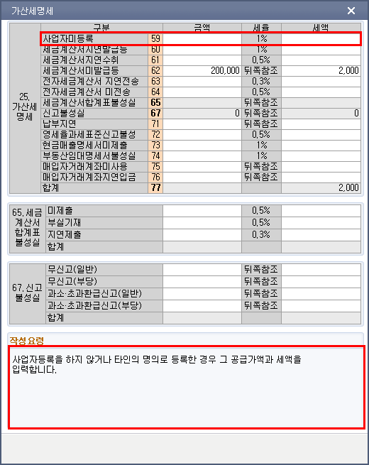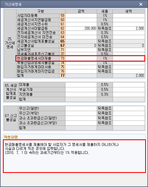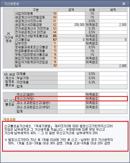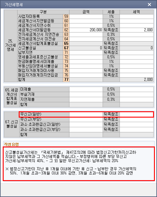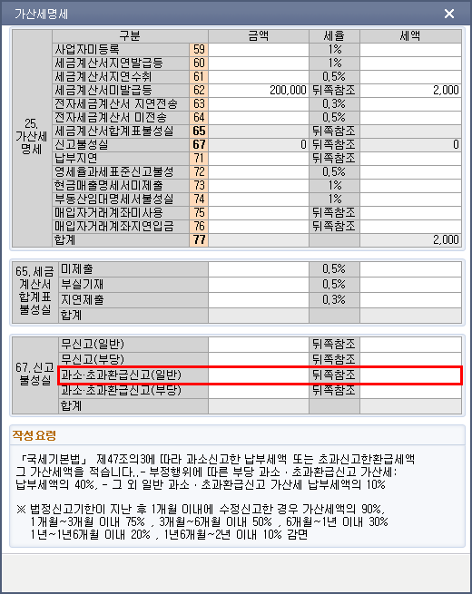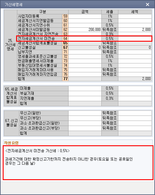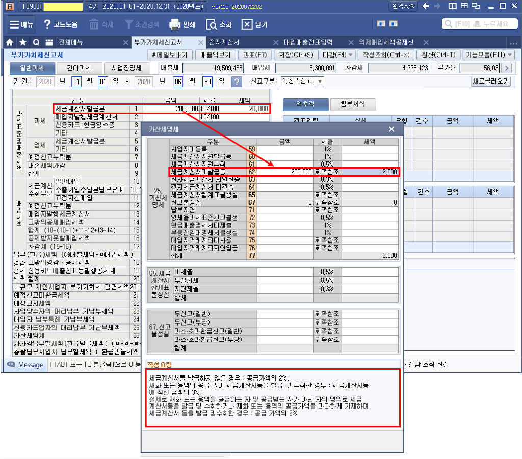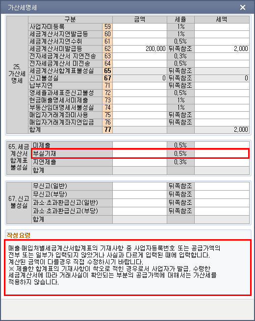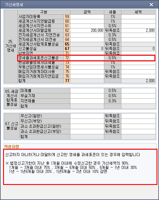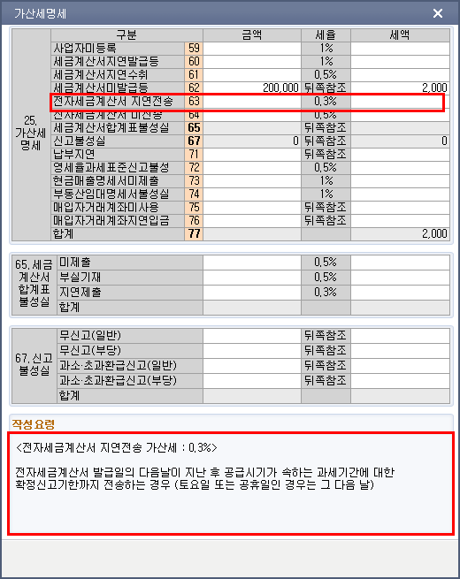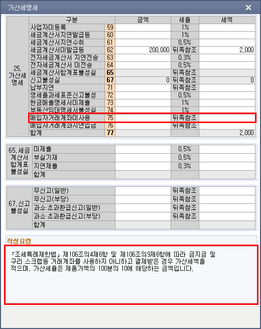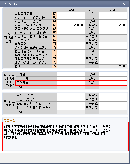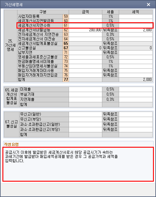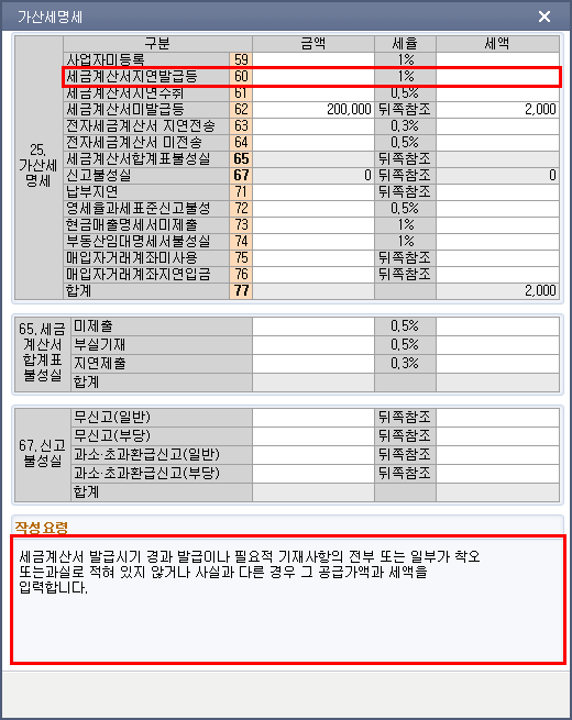 부가가치세 가산세 - 세법 -> 세금계산서의 발급시기에 전자세금계산서 외의 (수기)세금계산서를 발급한 경우 공급가액의 1%