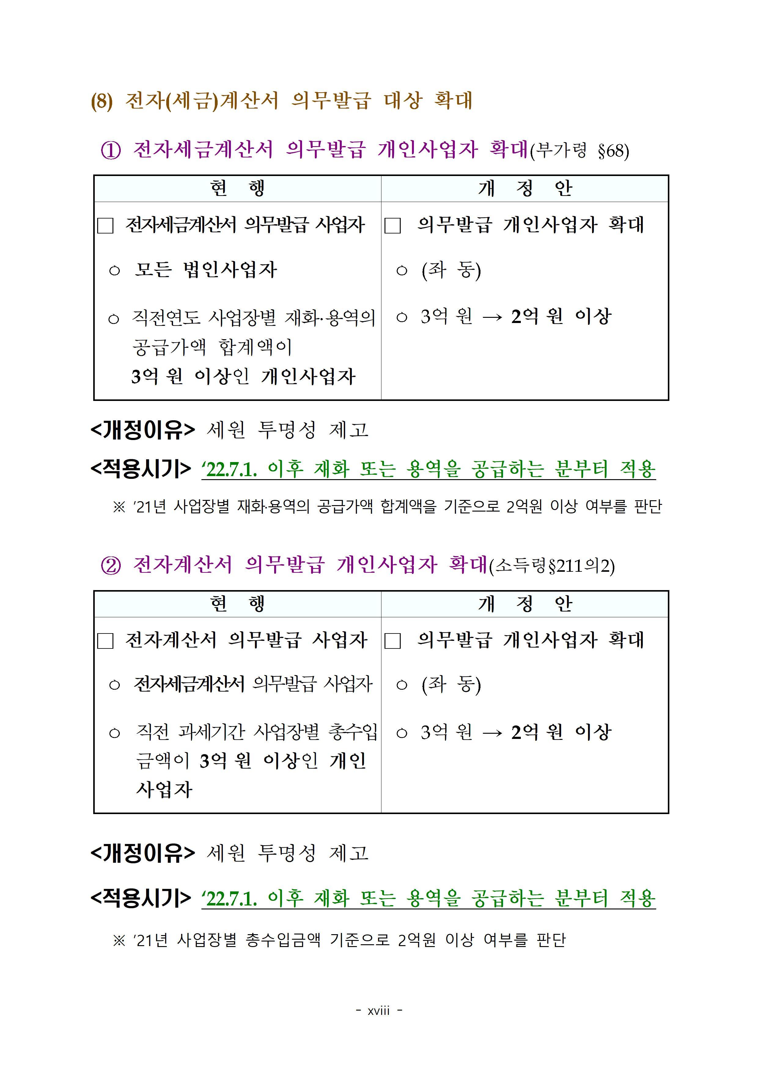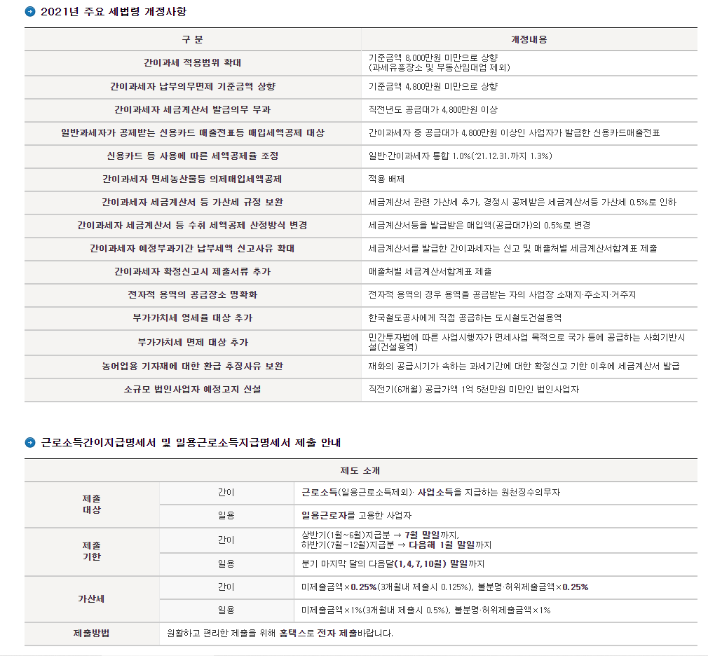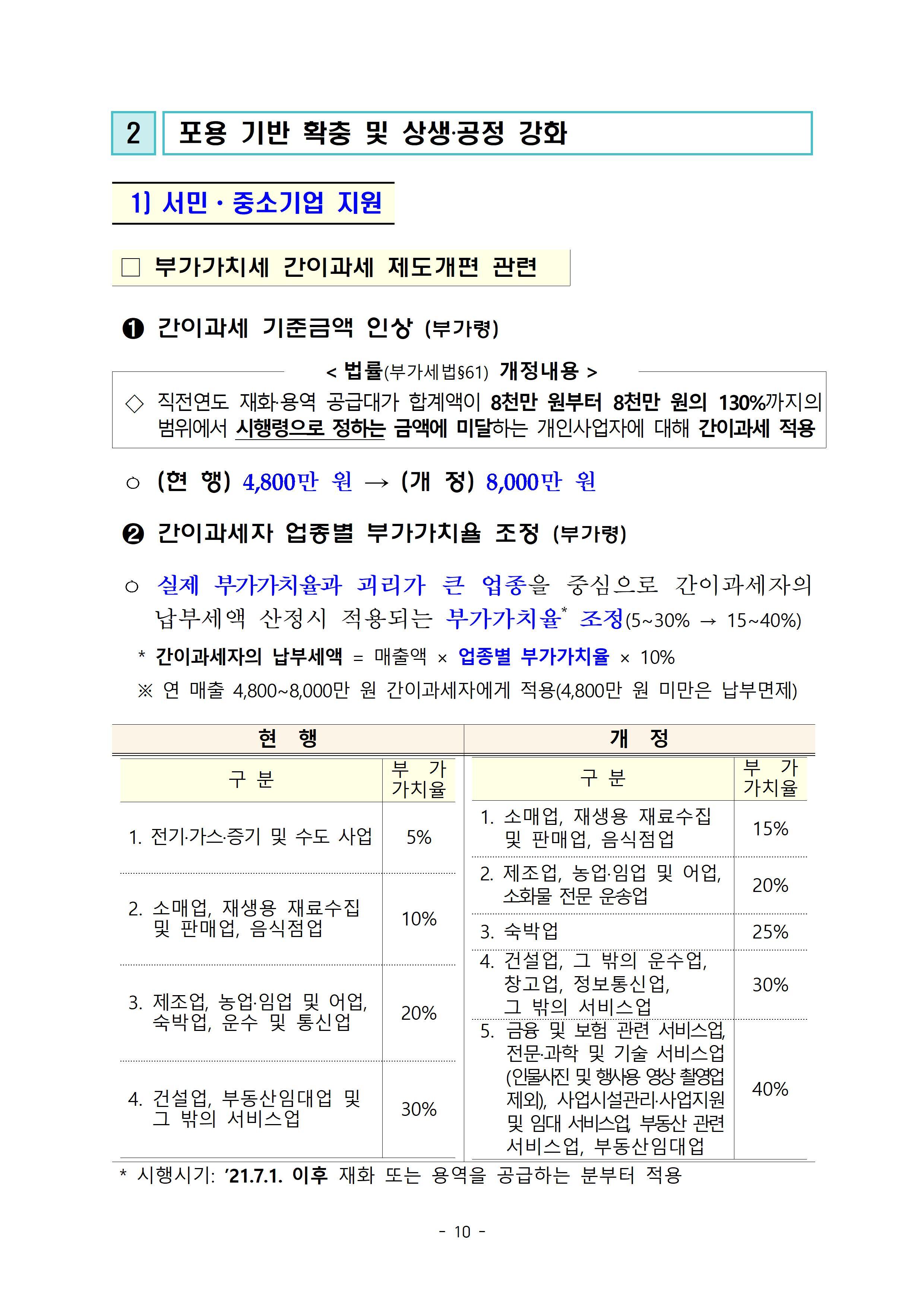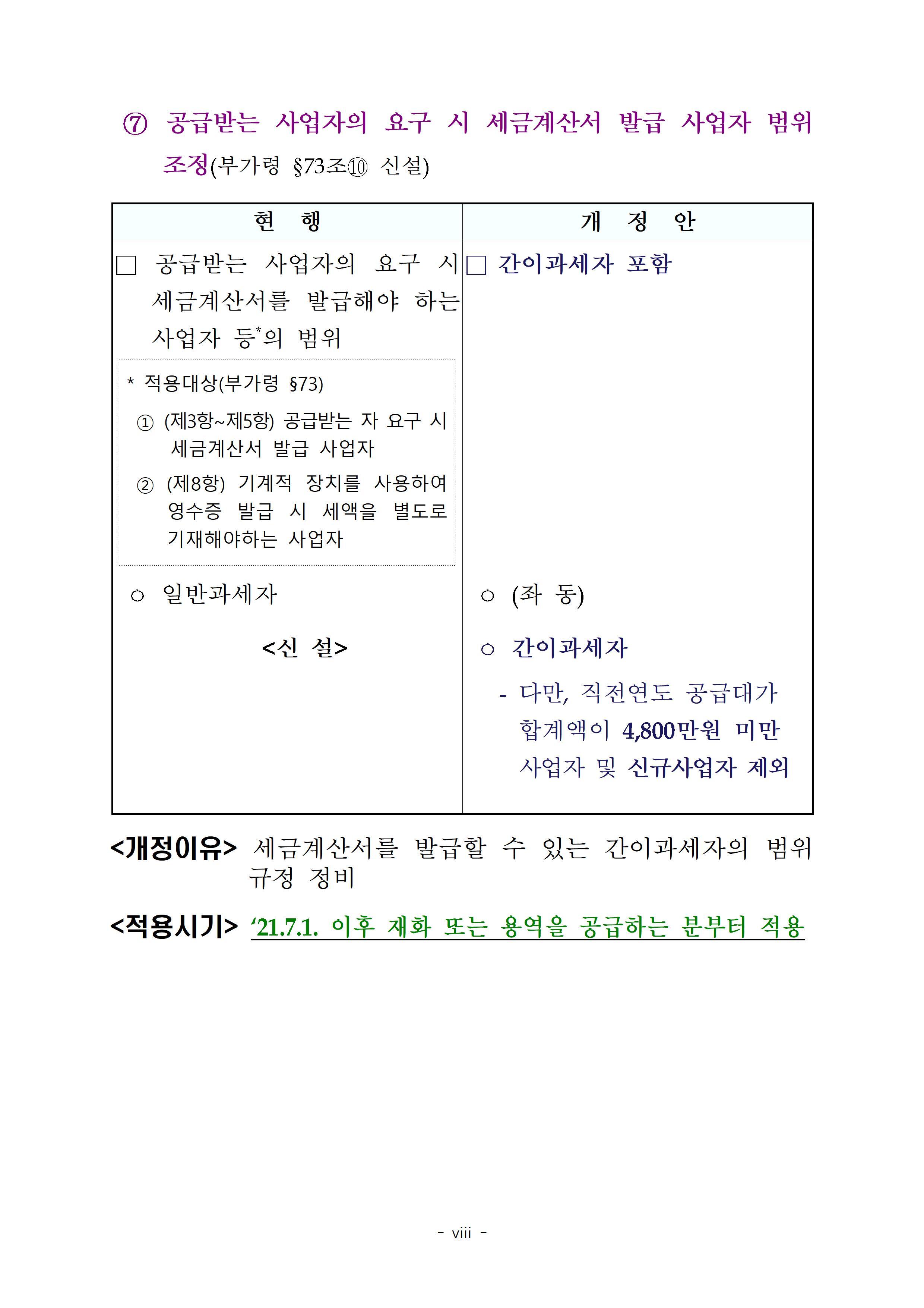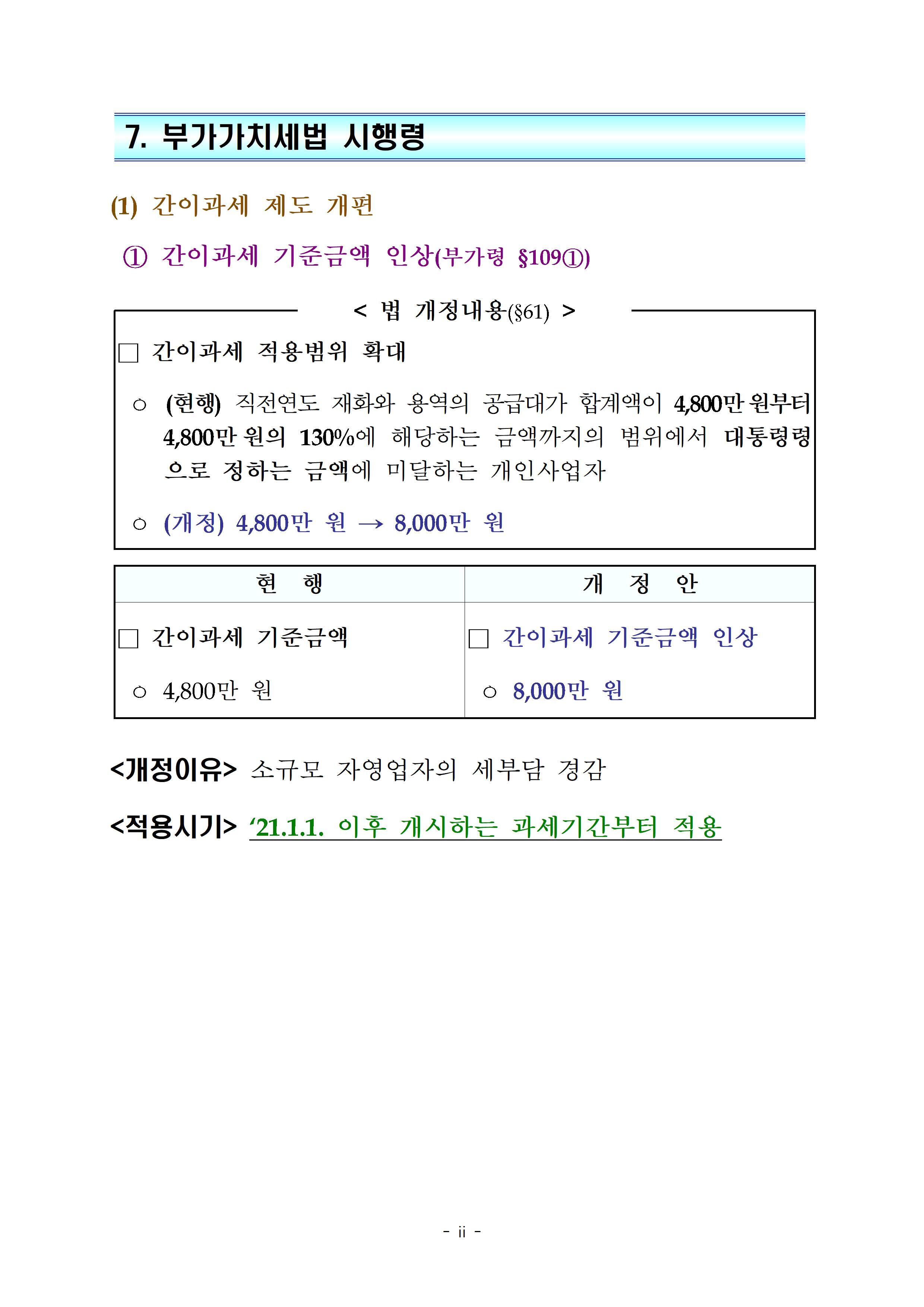 부가가치세 간이과세 제도개편 관련 - 간이과세 기준금액(4,800만원 → 8,000만원) 인상 (부가령) , 4,800만원 미만은 면제