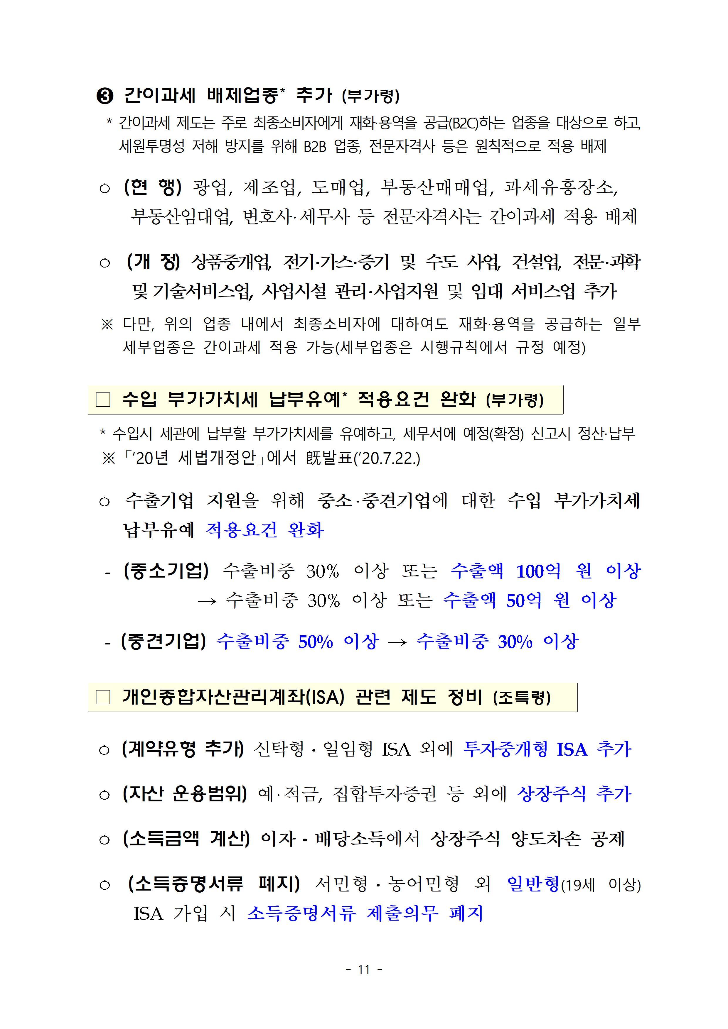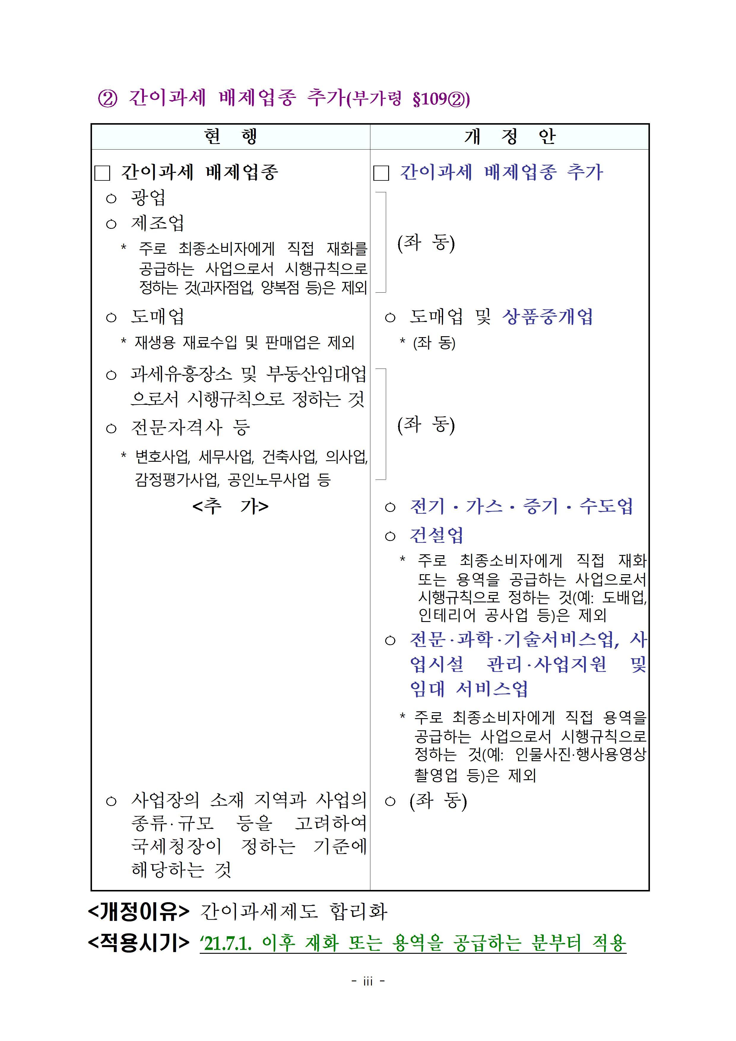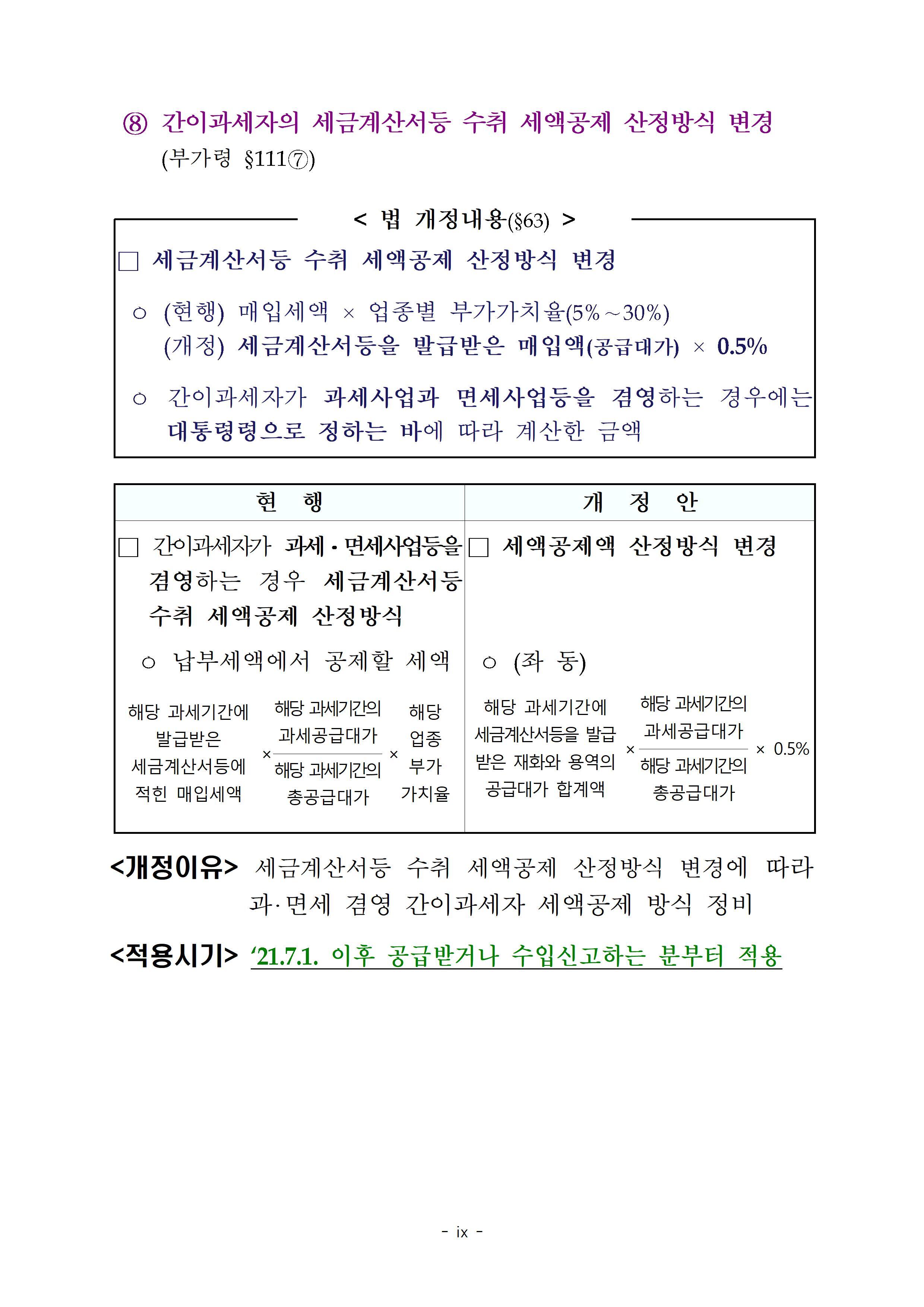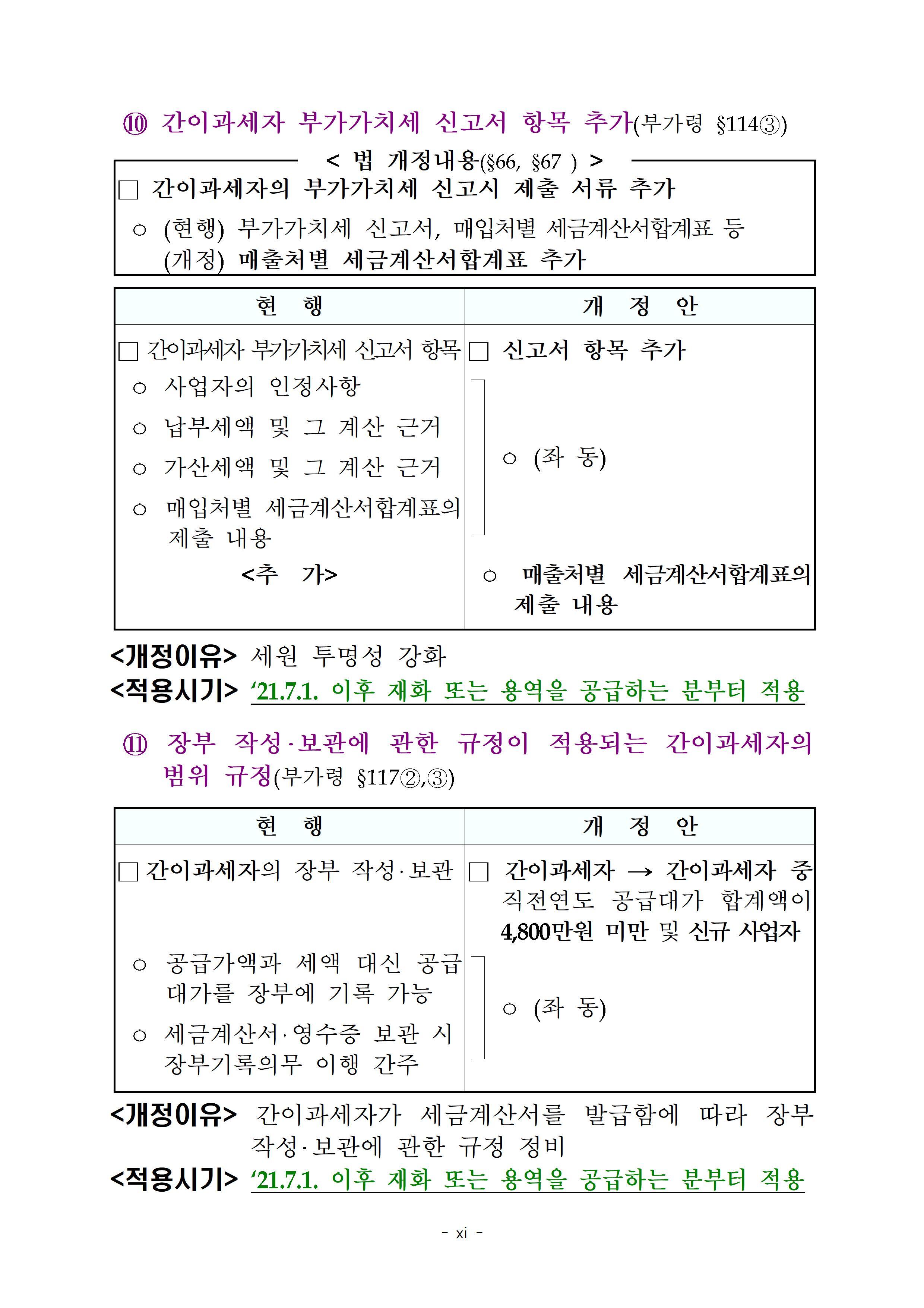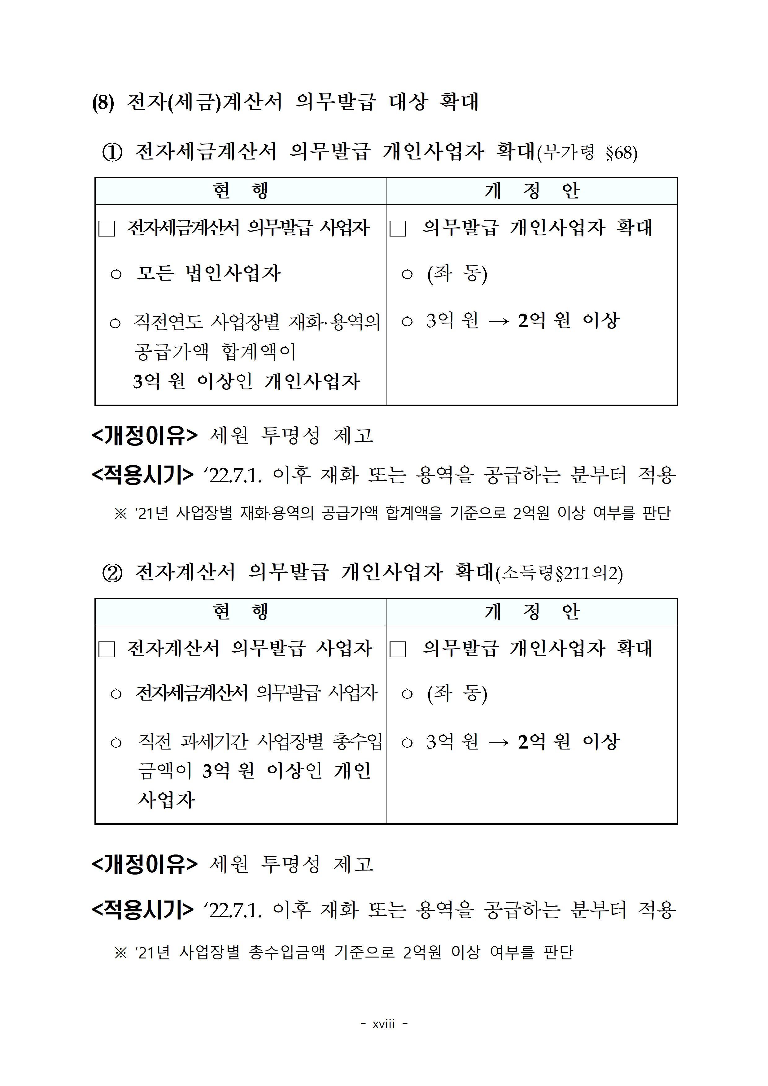부가가치세 간이과세 제도개편 관련 - 간이과세 기준금액(4,800만원 → 8,000만원) 인상 (부가령) , 4,800만원 미만은 면제