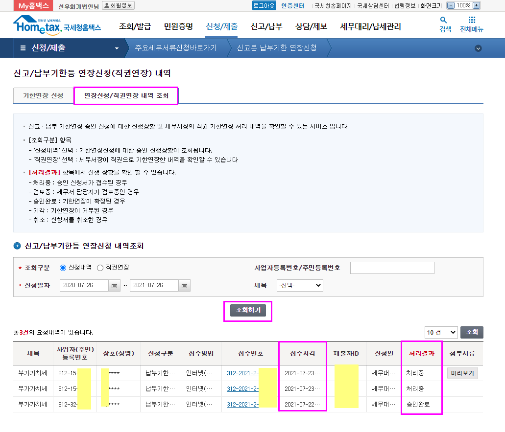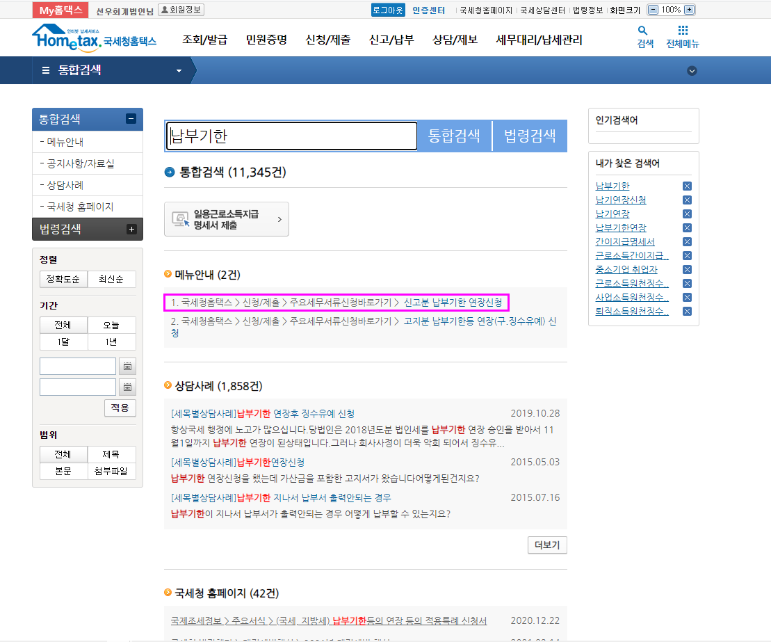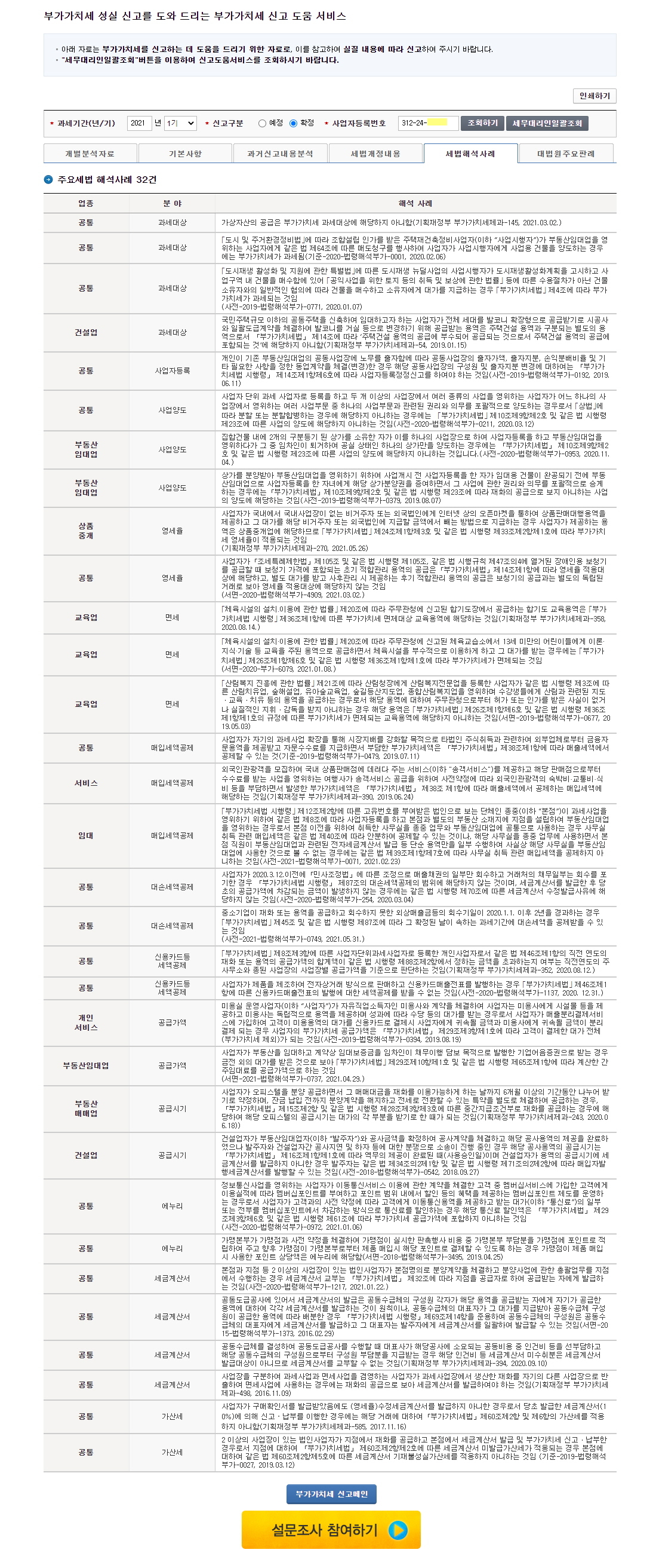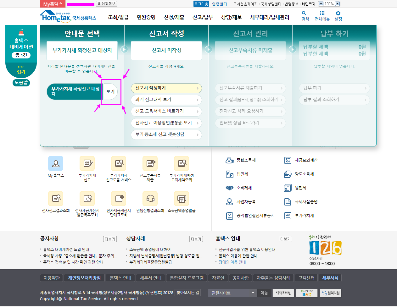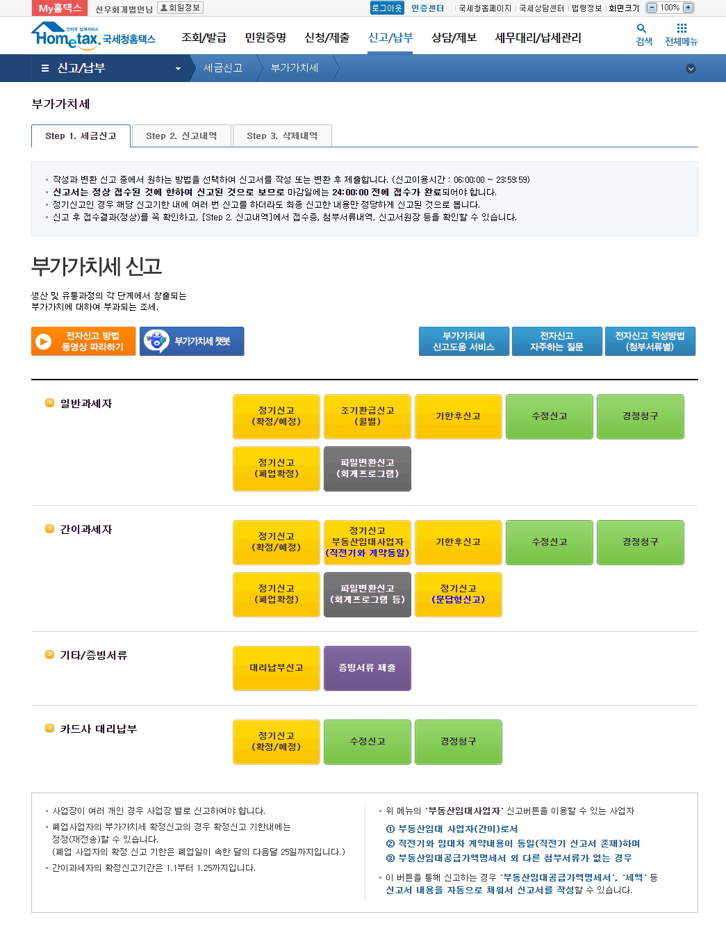 홈택스의 "부가세신고용 합계표조회" 메뉴는