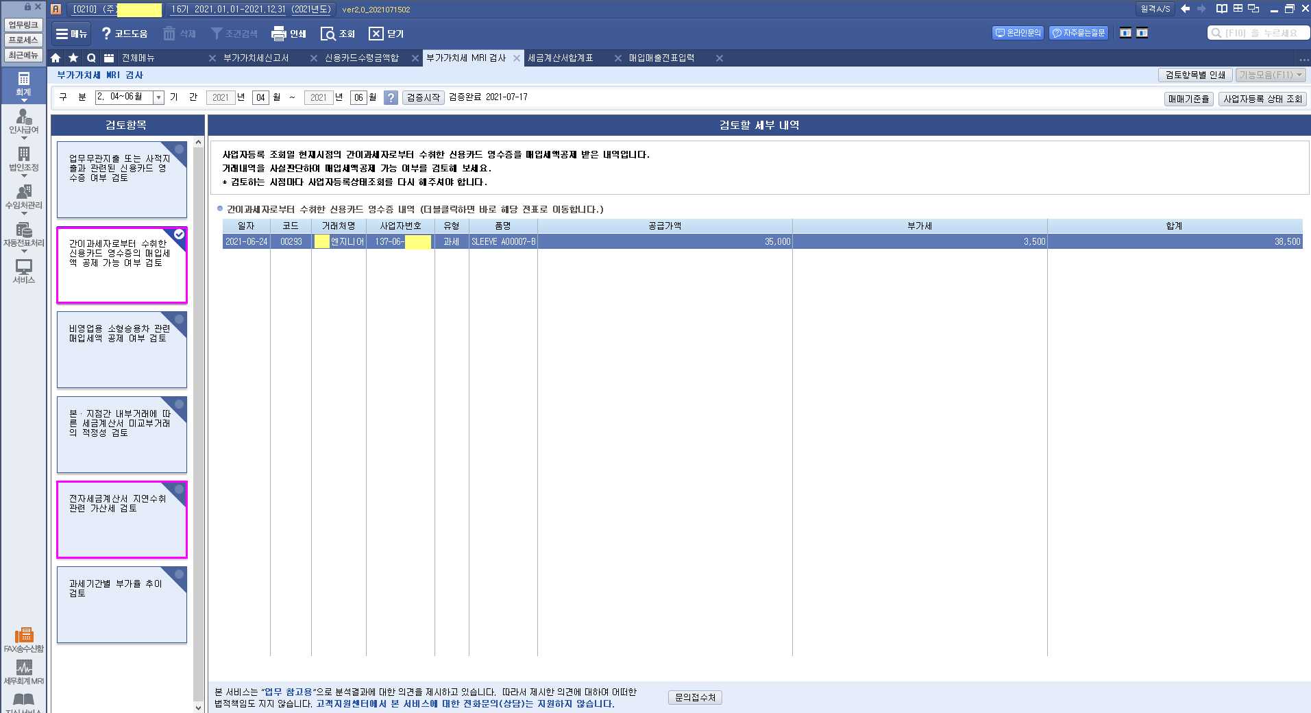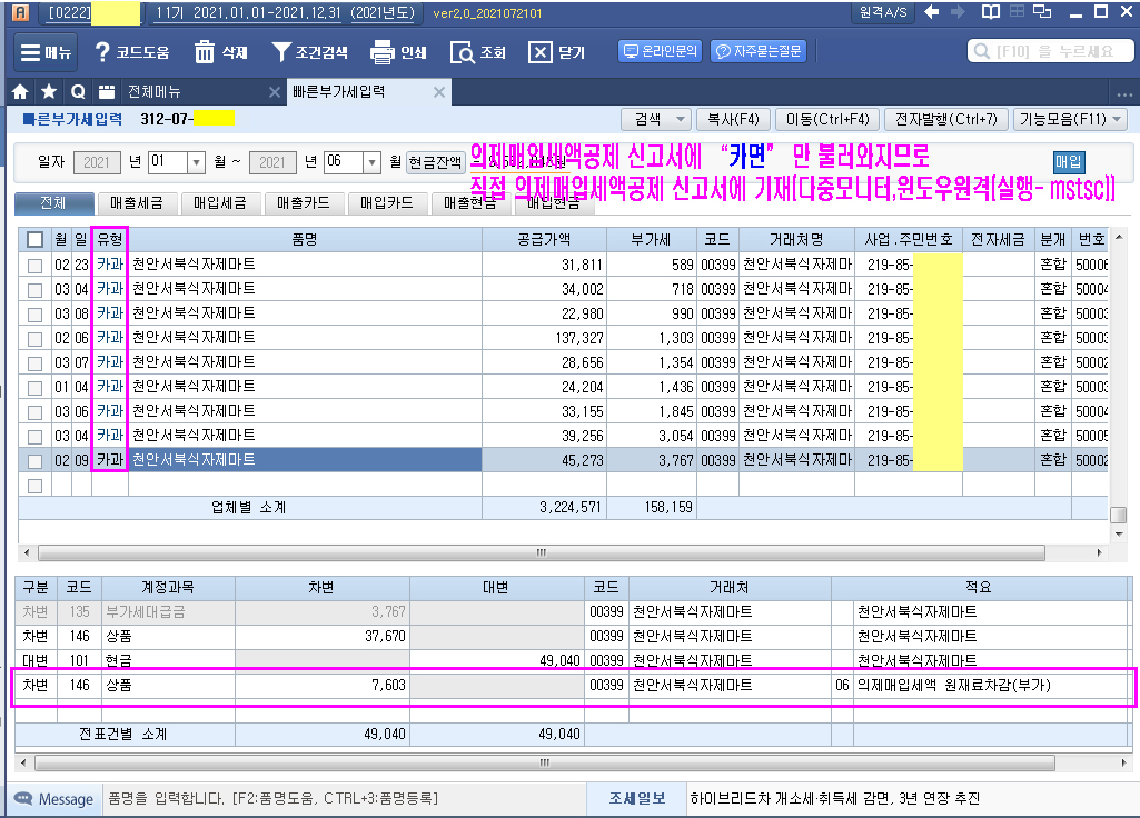 매입세금계산서 중 거래처 주의 -> 카드체크기 단말기를 설치해 줌.