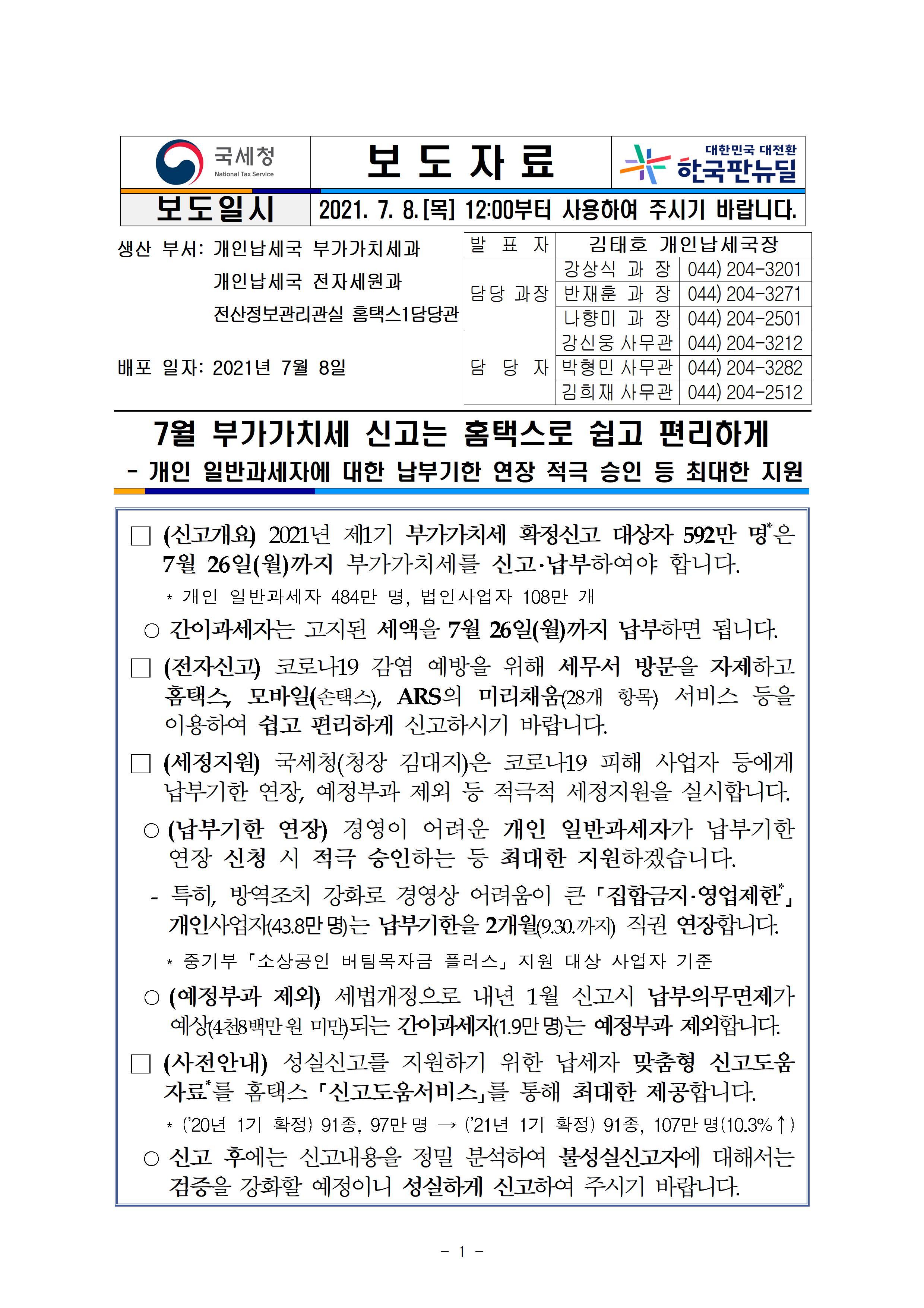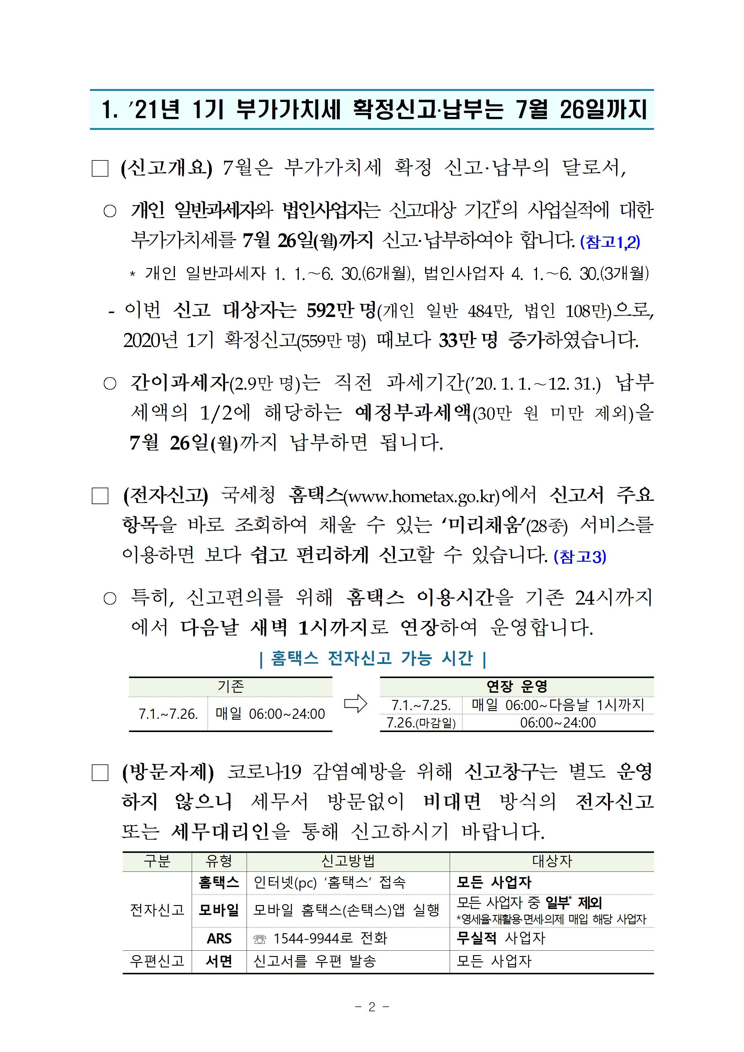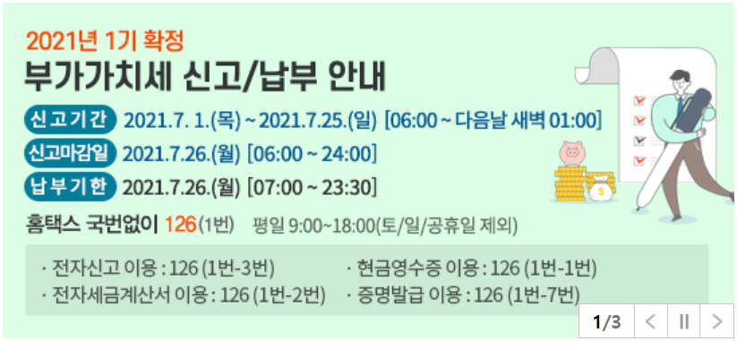 2021년 7월 26일(월요일)까지 부가가치세 신고·납부기한입니다.