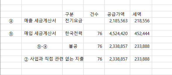 ① 전기세 발행 세금계산서 공급가액 2,185,563원 부가세 218,556원