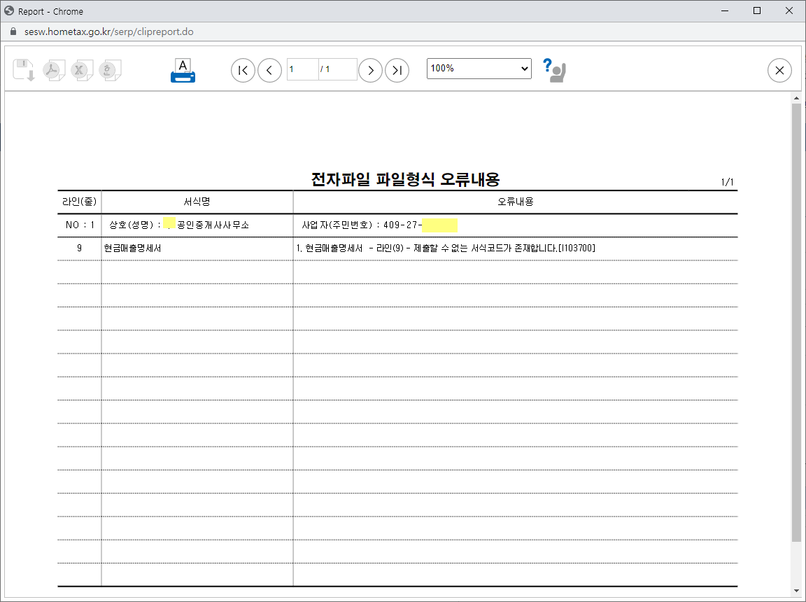 | Q 오류내용 " 현금매출명세서-라인(6)- 제출할 수 없는 서식코드가 존재합니다 [1103700] " 중개업자로 2020.7월 간이과세자로 변경되어 신고 중, 매출은 현금영수증 매출만 있습니다. 새로 작성해도, 위와 같은 오류가 계속 뜨는데 왜 그럴까요? 안녕하세요 고객님 더존 프로그램을 사용해주셔서 감사드리며 귀사의 무궁한 발전을 기원합니다. 고객님께서 문의주신 사항에 답변 드립니다. 간이과세자의 경우 [현금매출명세서]는 제출 서식이 아닙니다. 신고서 마감시 [현금매출명세서]는 제외하고 마감해주시기 바랍니다. 더존 솔루션지원센터에서 다양한 컨텐츠를 제공하고 있으니, 아래 링크클릭하여 업무에 활용부탁드립니다. ▶더존솔루션지원센터 YouTube 채널 바로가기 감사합니다. 더존온라인고객센터 |