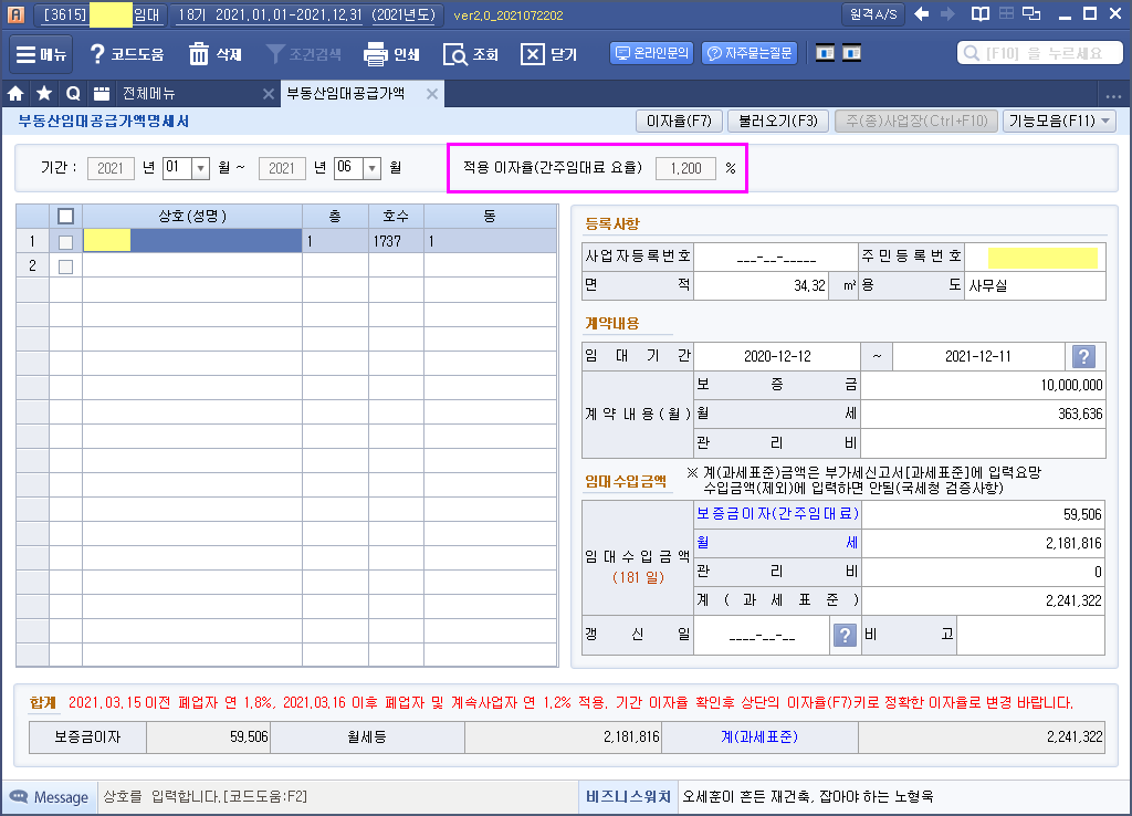 상단에 월세에 포함해서 신고할것.