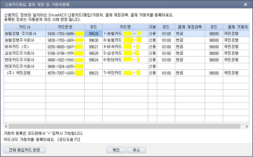 개인사업자 사업용신용카드 등록 가능 카드