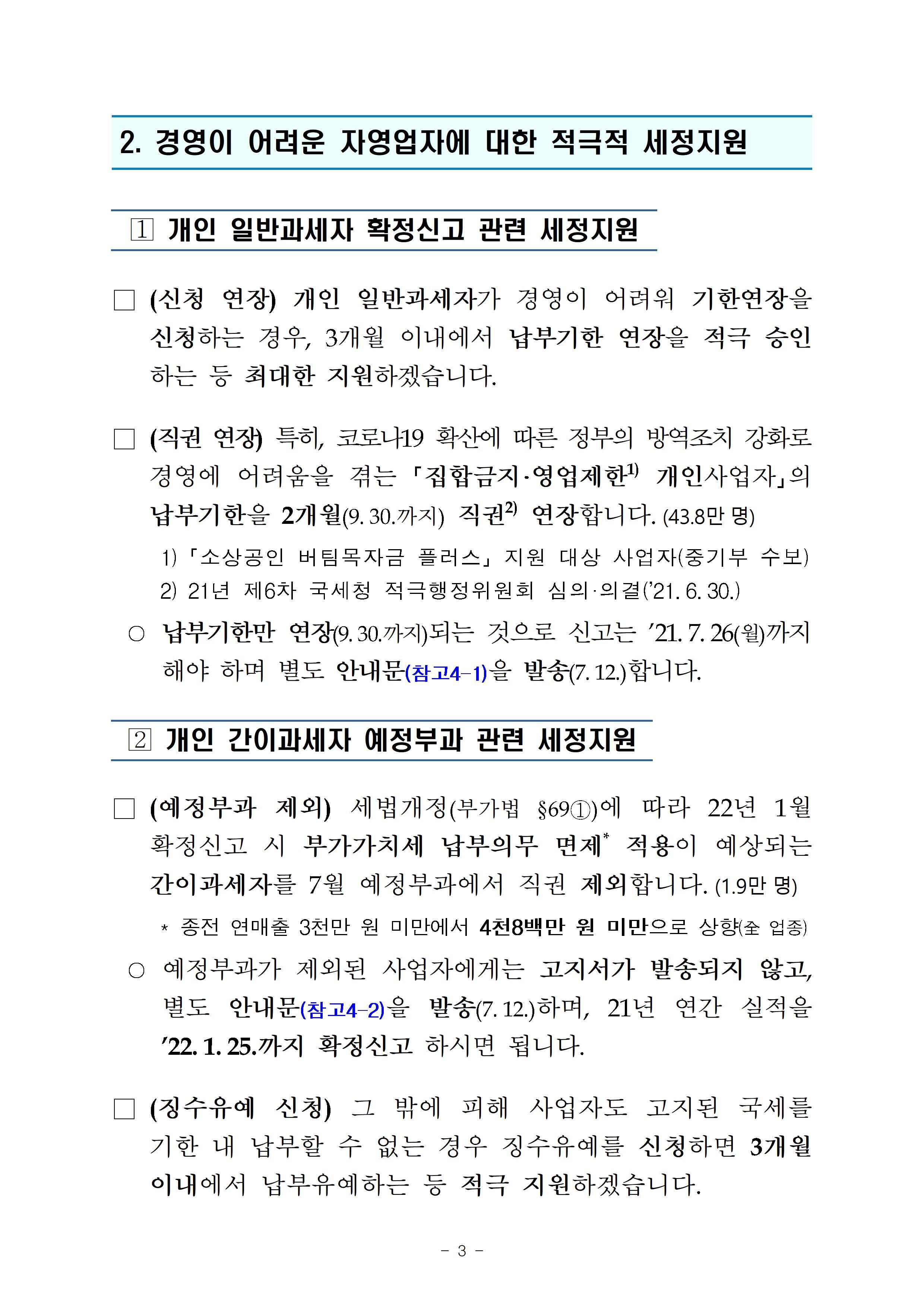 | - (시행시기) ‘21.7.1. 이후 재화 또는 용역을 공급하는 분부터 적용 | - ‘21.7.1. → ‘22.1.1. |