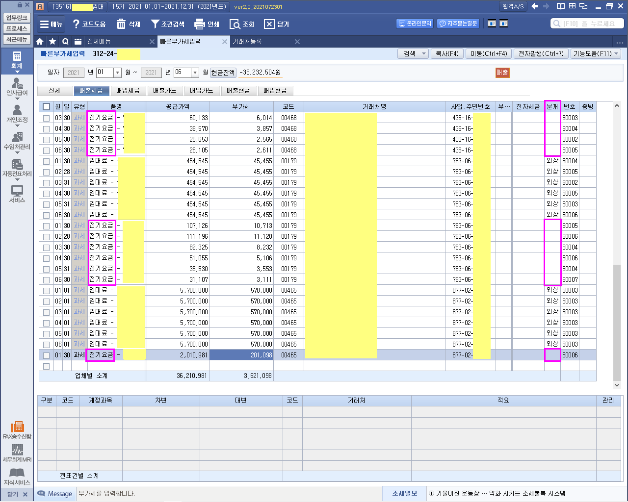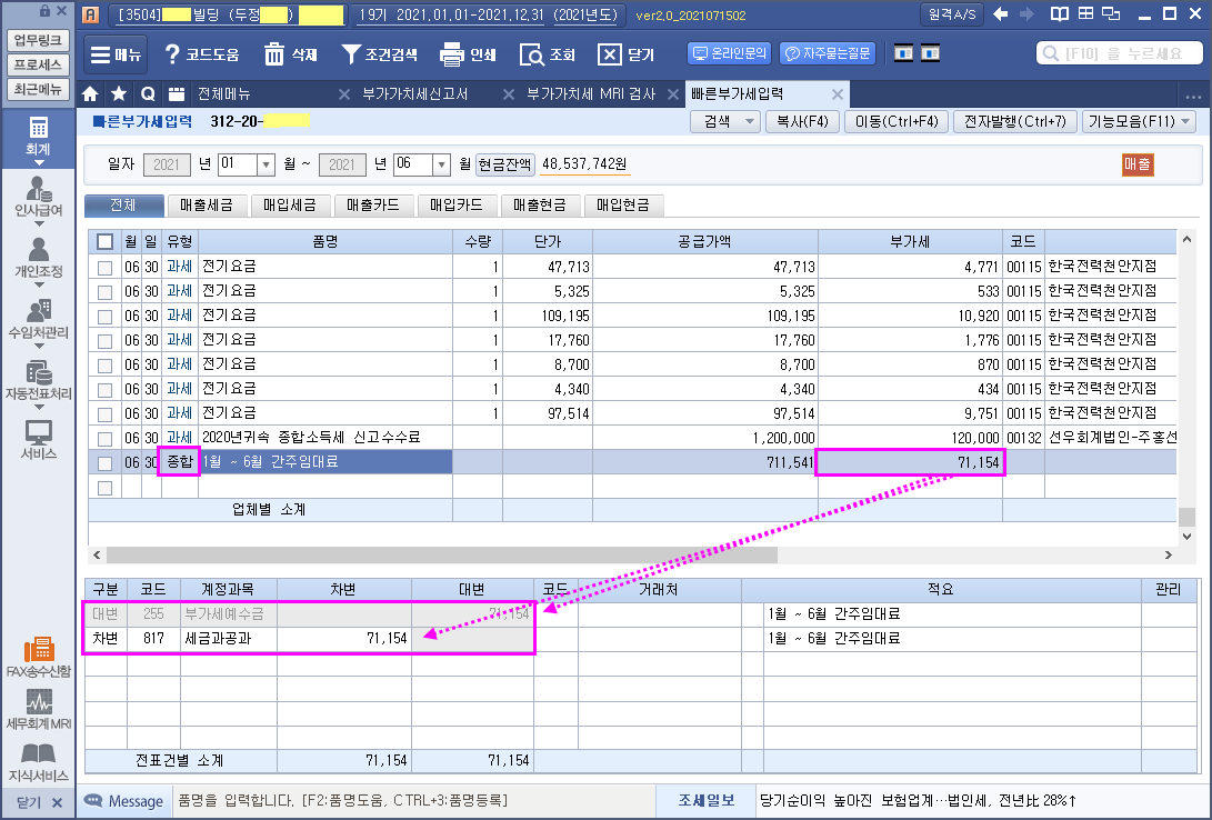 월세(1월~6월) 수기 세금계산서등 확인