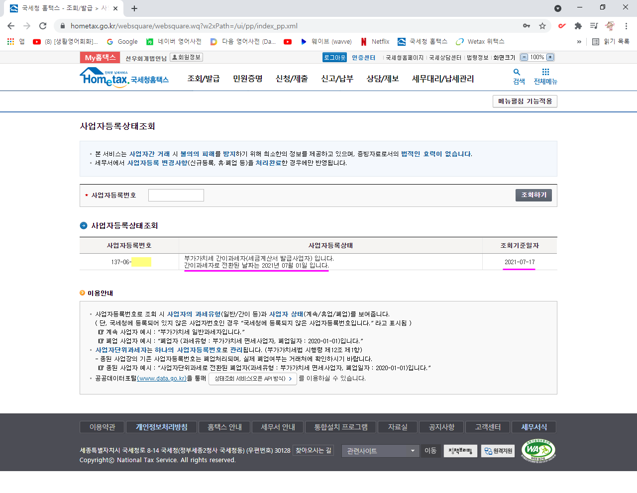 2021년 7월 1일 간이과세자 -> 일반과세자 과세유형 대상자 check!!