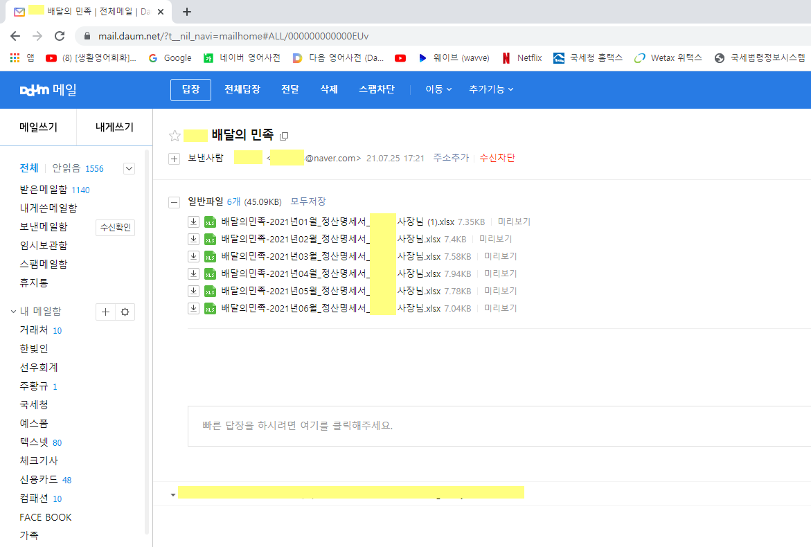 현금매출 있는 곳 사업용계좌 엑셀계좌 이메일로 보내주세요.