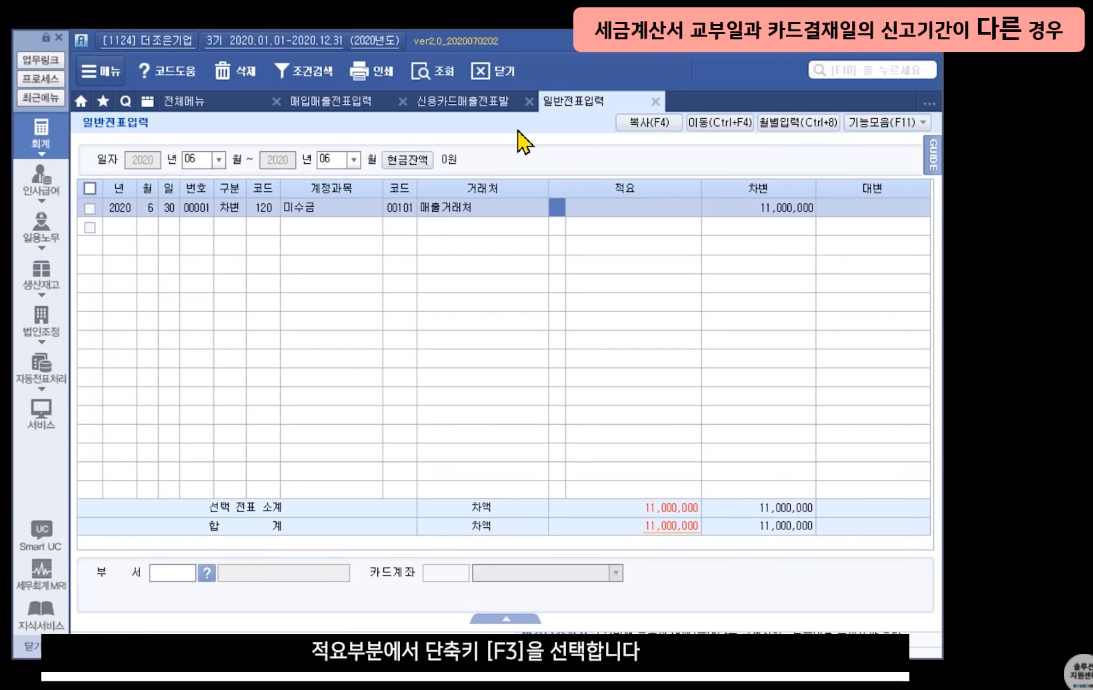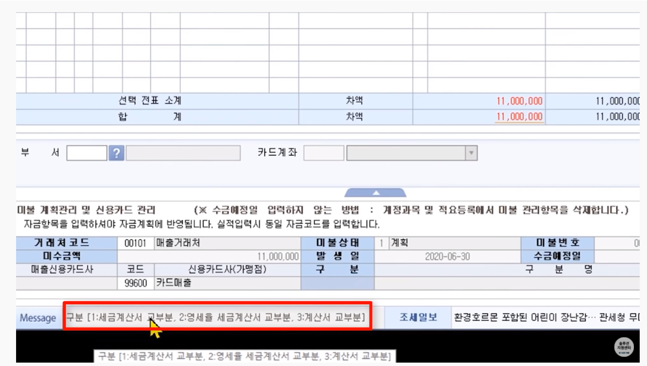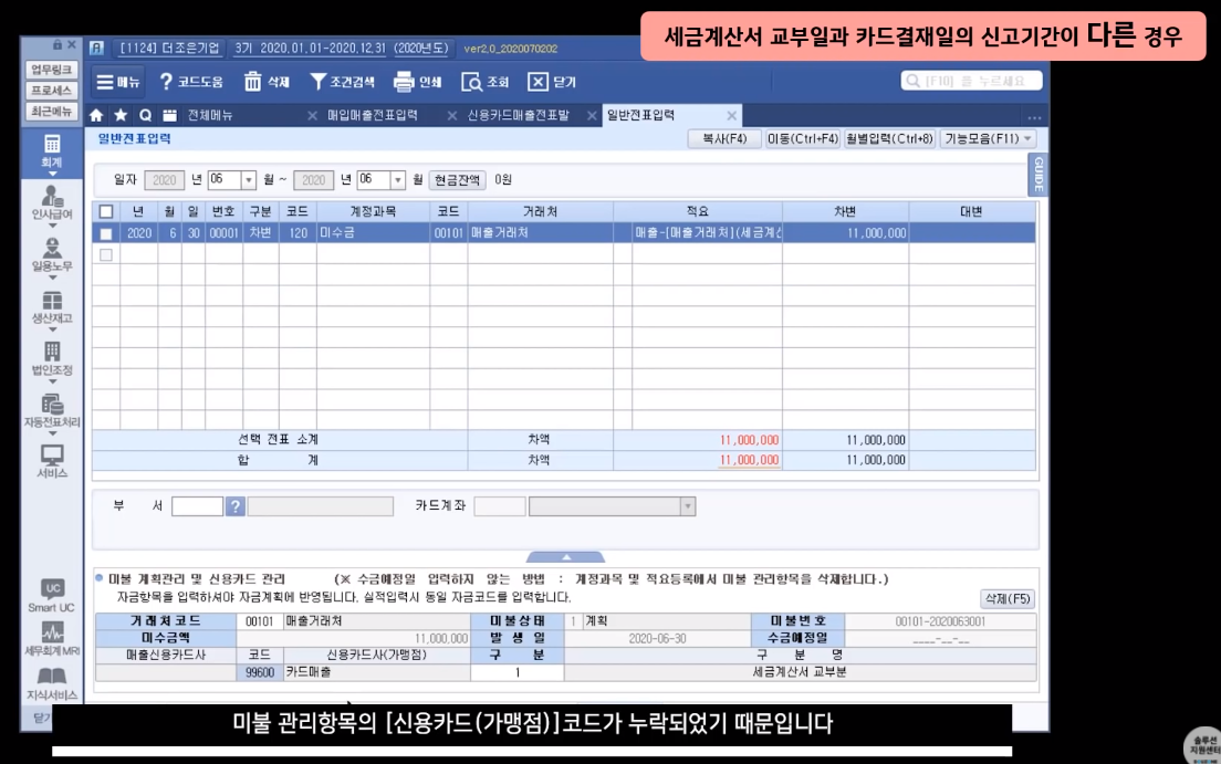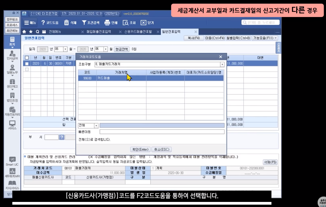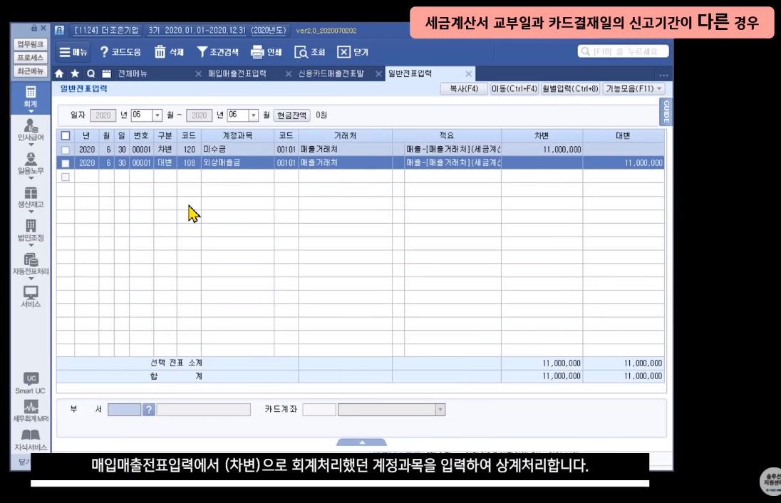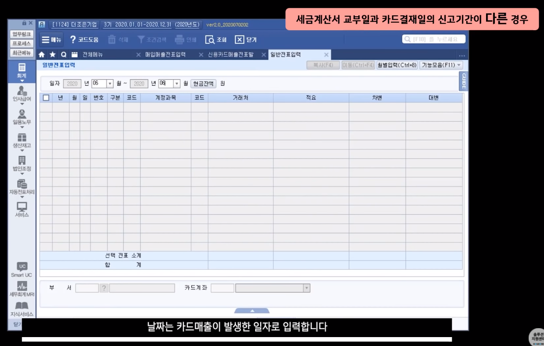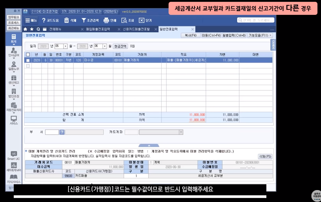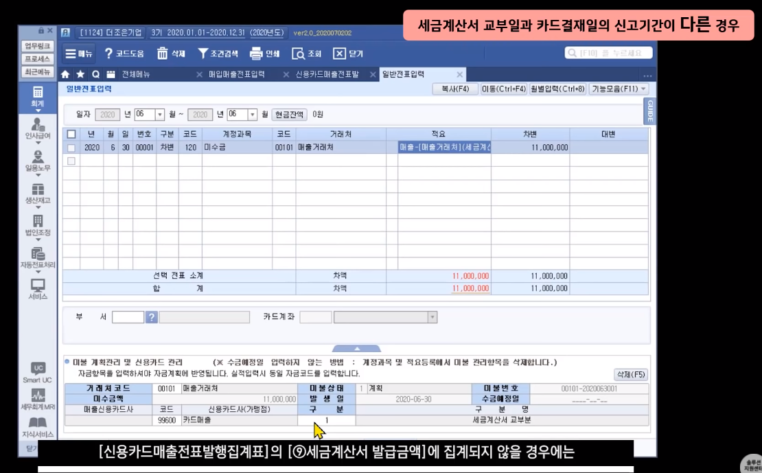 [더존 Smart A] 부가세 사용방법 | 신용카드매출전표발행집계표 | 세금계산서 교부분에 대해서 신용카드로 결제를 한 경우 어떻게 입력하나요?