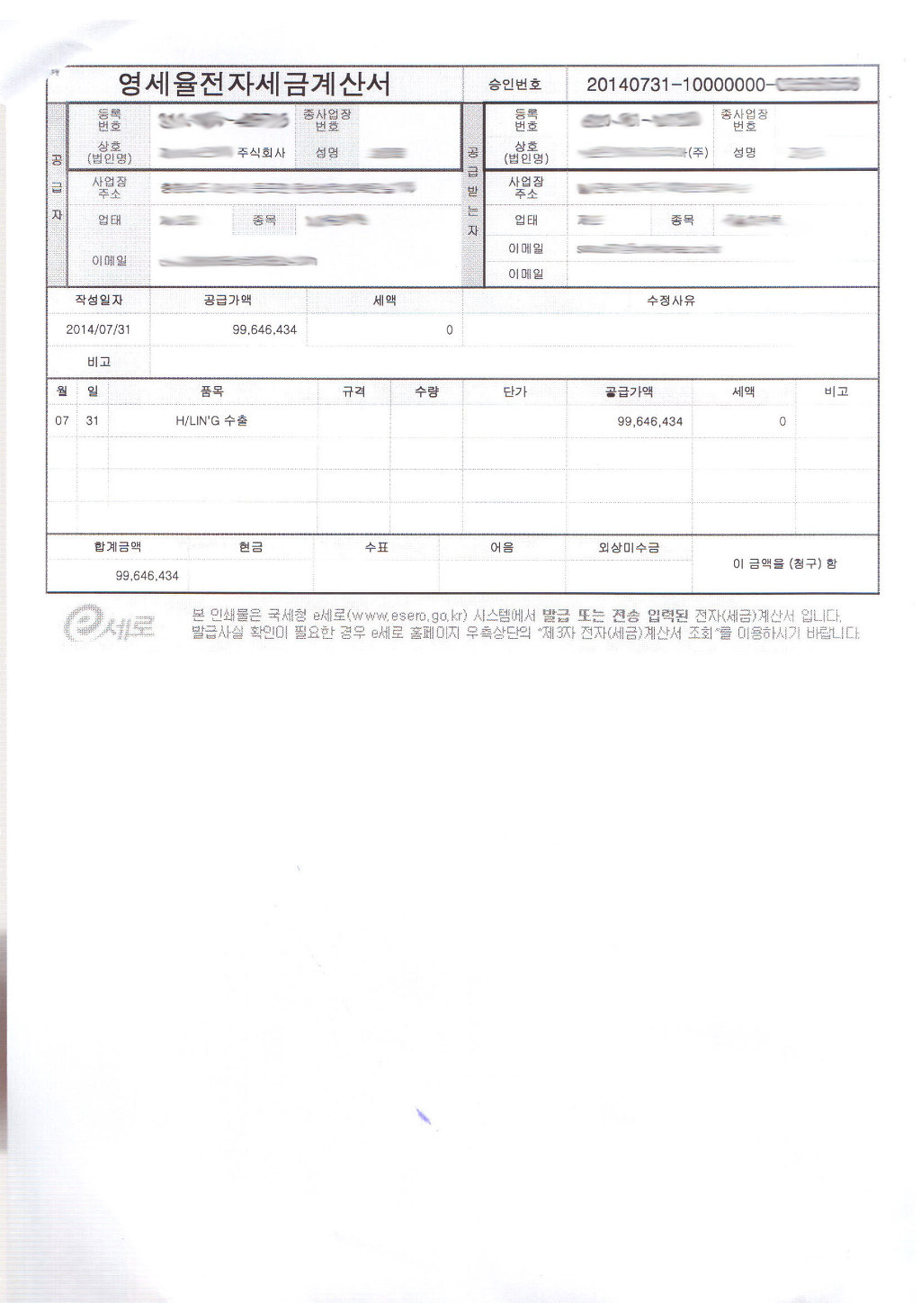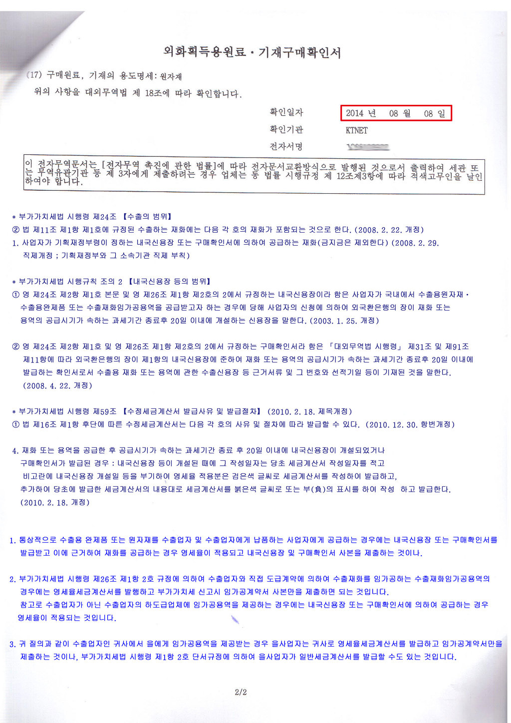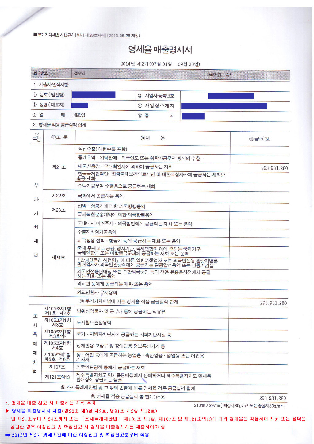 영세율첨부서류는 수출계약서 사본 또는 외국환은행이 발행하는 외화입금증명서인 것이므로(부가가치세법 시행령 제101조 1항 2호),