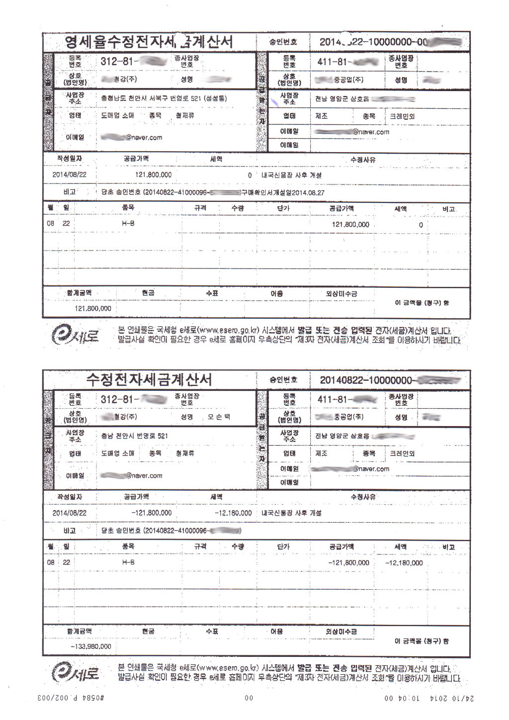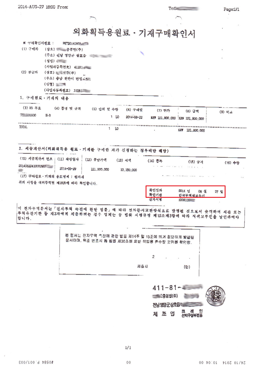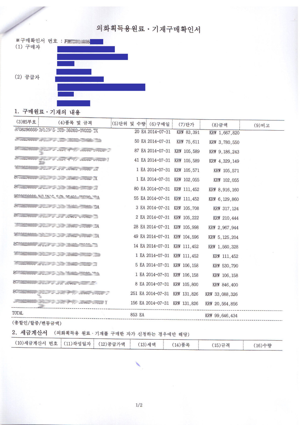 영세율첨부서류는 수출계약서 사본 또는 외국환은행이 발행하는 외화입금증명서인 것이므로(부가가치세법 시행령 제101조 1항 2호),