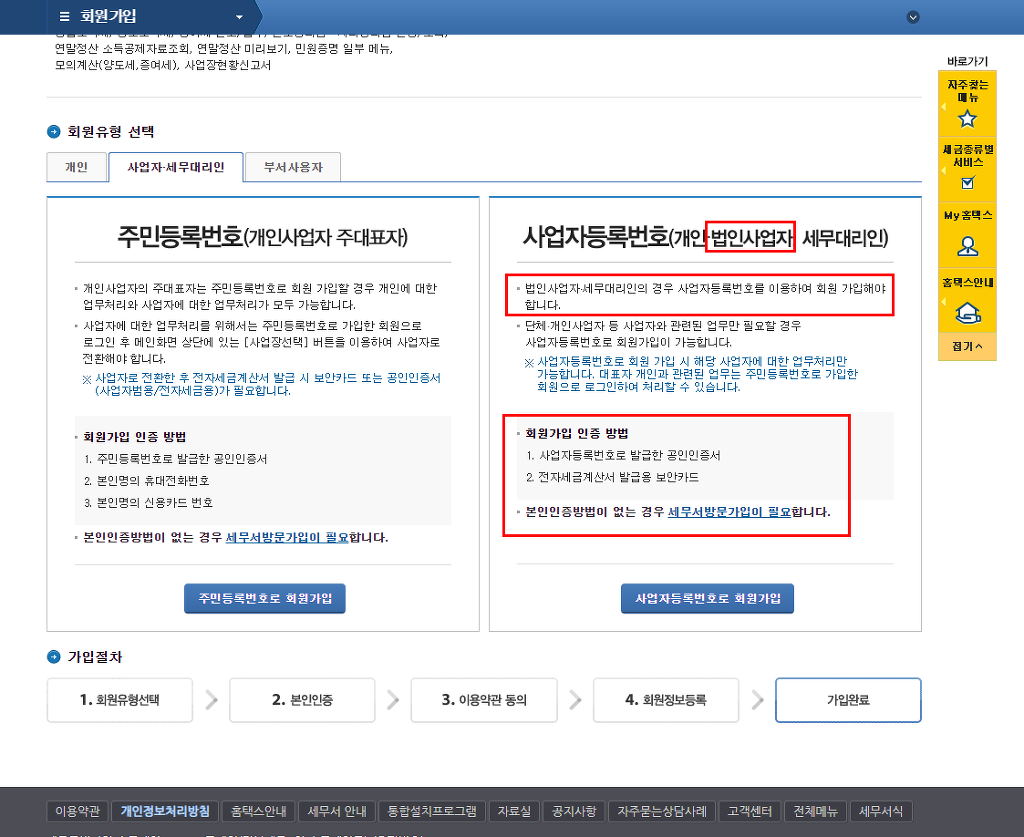 법인사업자 홈택스 가입 - 사업자등록번호로 발급한 공인인증서 필요 (연 전자세금계산서전용 4,400원 또는 범용공인인증서 110,000원) 작성자Jayden Ju.|작성시간20.02.05|조회수553 목록 댓글 0 글자크기 작게가 글자크기 크게가 다음검색 현재 게시글 추가 기능 열기 북마크 공유하기 신고 센터로 신고 댓글 댓글 0 댓글쓰기 답글쓰기 댓글 리스트