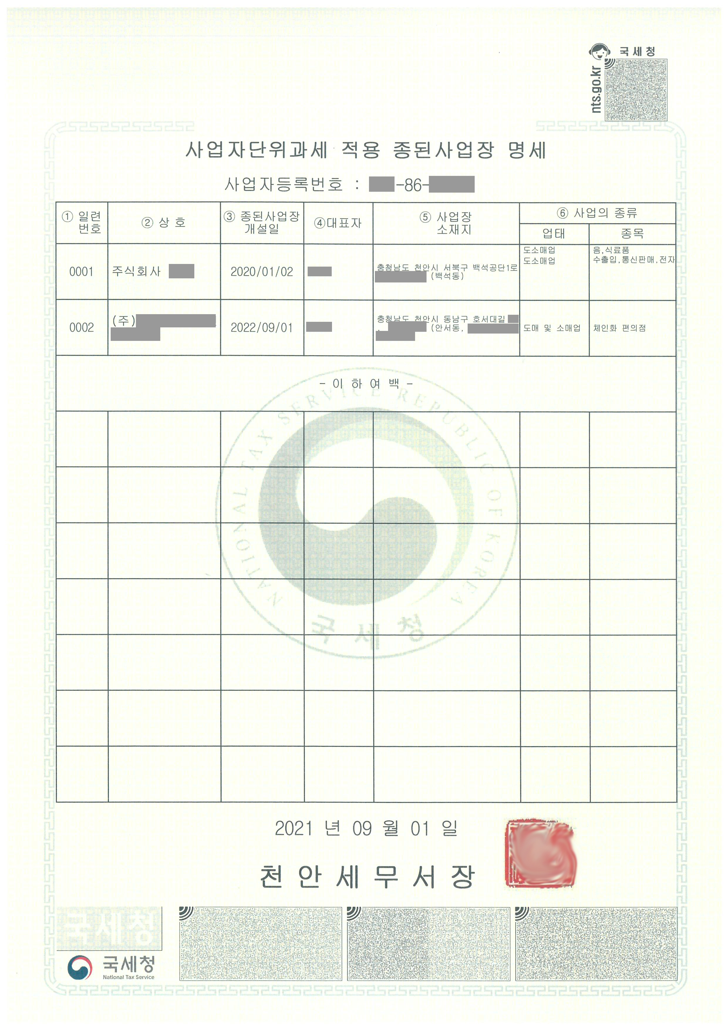 사업장단위과세 종된사업장 등록 -> 세무서 방문신청 종사업장 일련번호 : 0001 종된사업장개설일/대표자/사업장소재지/업태, 작성자주황규|작성시간21.09.01|조회수1,601 목록 댓글 1 글자크기 작게가 글자크기 크게가 다음검색 현재 게시글 추가 기능 열기 북마크 공유하기 신고 센터로 신고 댓글 댓글 1 댓글쓰기 답글쓰기 댓글 리스트 작성자난이 | 작성시간 21.11.05 좋은 정보 감사합니다. 댓글 전체보기