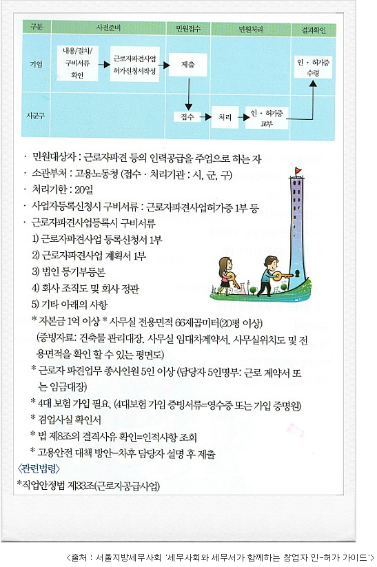 사전준비 : 근로자파견산업허가신청서 작성 : 고용노동청 제출