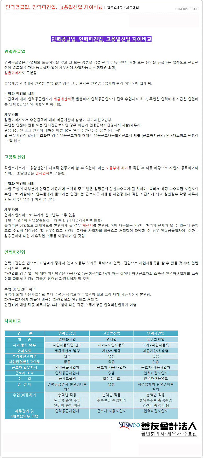 인력공급업 , 인력파견업 , 고용알선업 차이 비교
