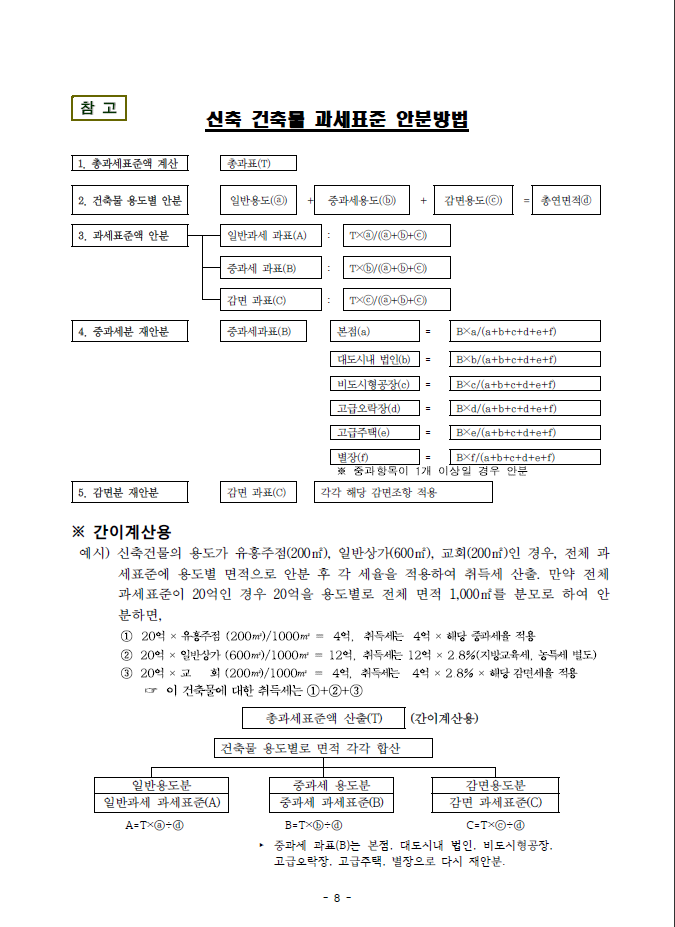 ⑧ 제1항부터 제7항까지의 규정에 따른 취득세의 과세표준이 되는 가액, 가격 또는 연부금액의 범위 및 그 적용과 취득시기에 관하여는 대통령령으로 정한다. <개정 2019. 12. 31.>