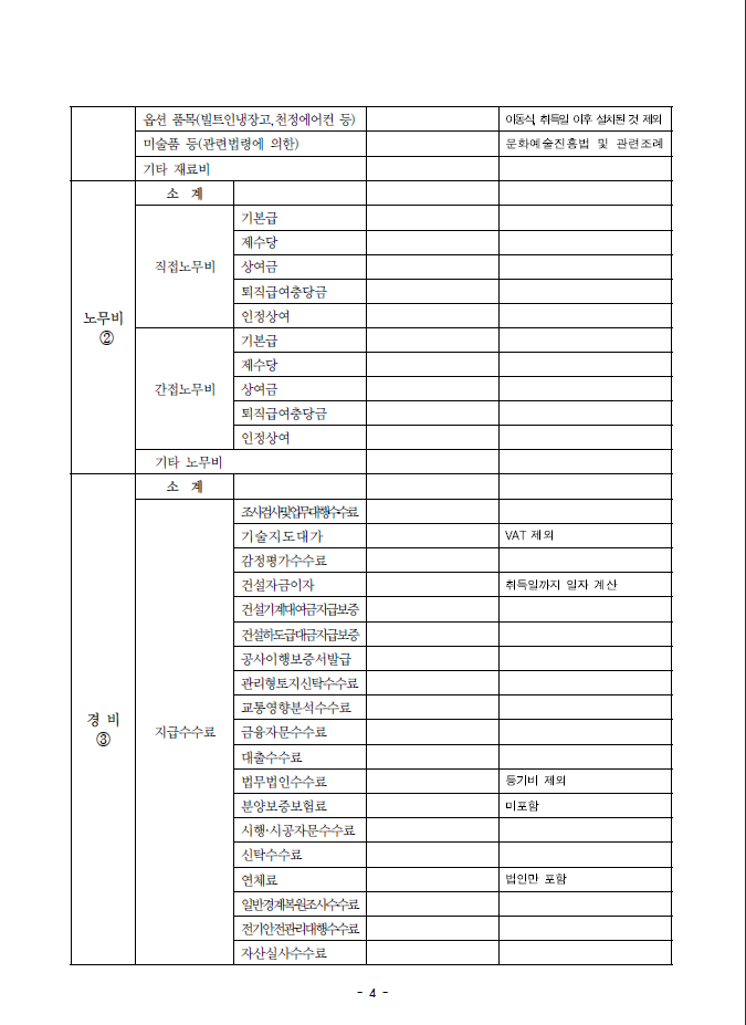 4. 취득에 필요한 용역을 제공받은 대가로 지급하는 용역비·수수료