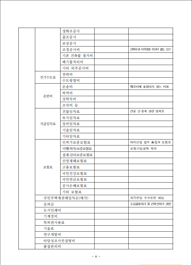 6. 제1호부터 제5호까지의 비용에 준하는 비용