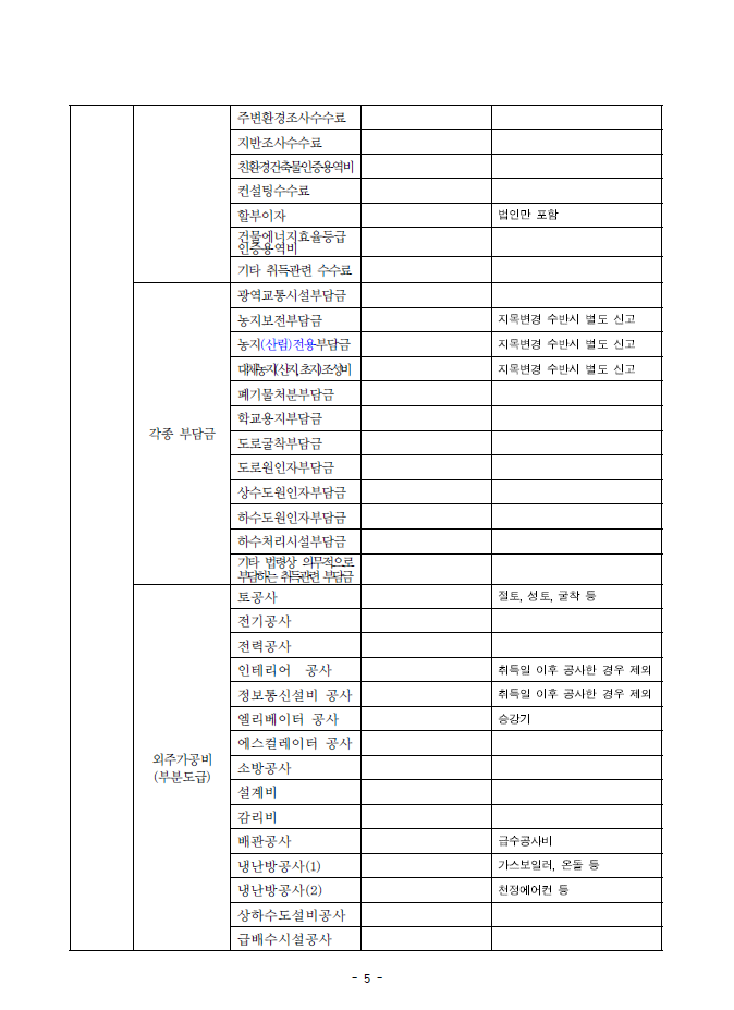 3. 「농지법」에 따른 농지보전부담금, 「산지관리법」에 따른 대체산림자원조성비 등 관계법령에 따라 의무적으로 부담하는 비용