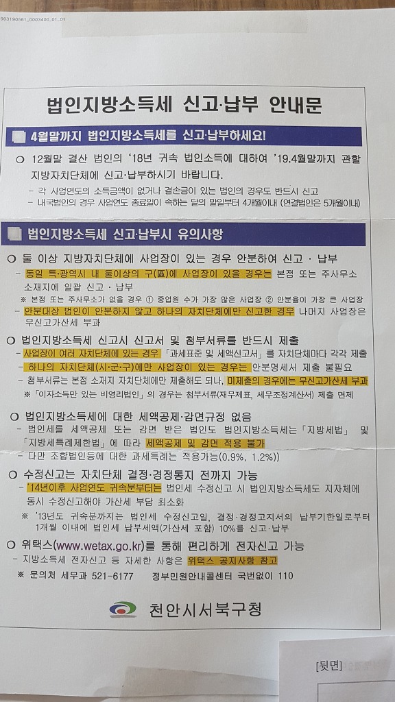 법인세의 경우는 납기 전까지 중복으로 신고해도 최종 신고만 유효하나