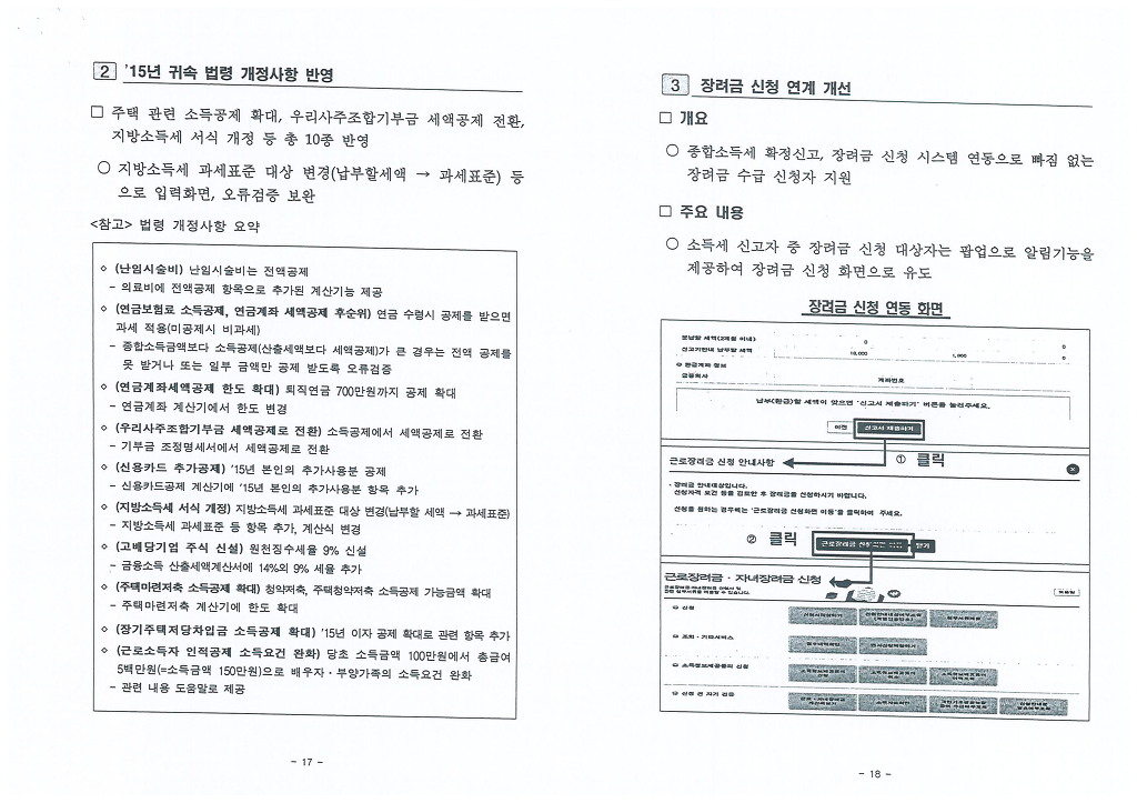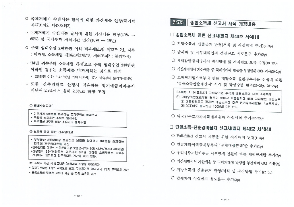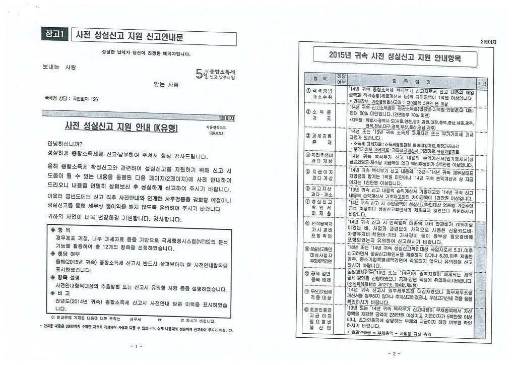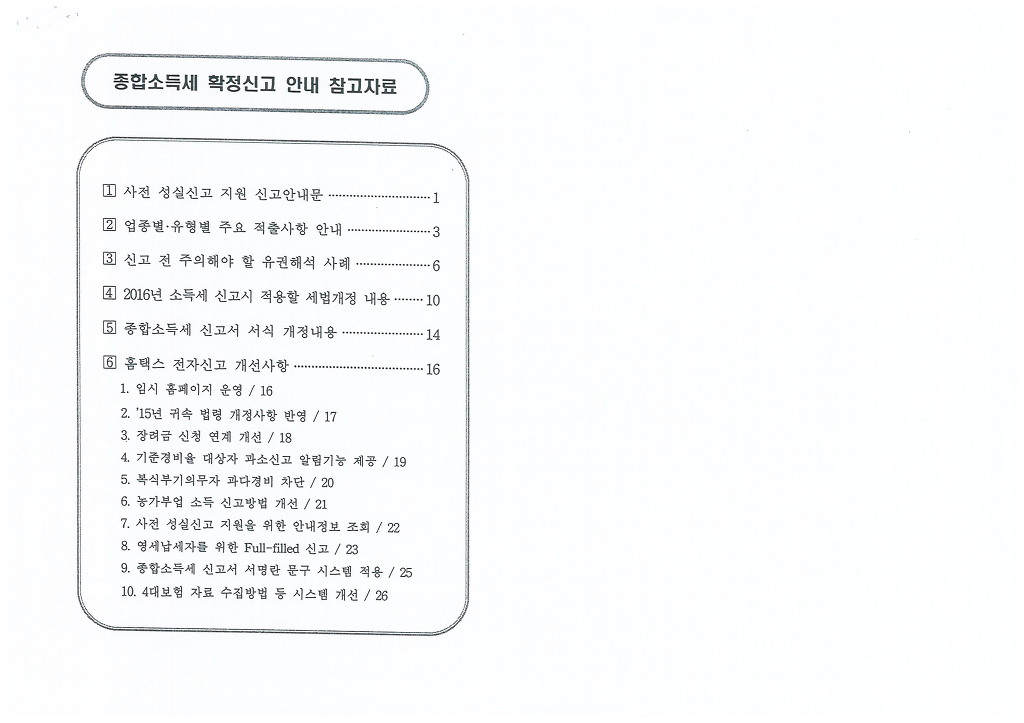 2015년 귀속 종합소득세 확정신고 안내 참고자료 - 세무서 작성자주황규 팀장|작성시간16.05.02|조회수156 목록 댓글 0 글자크기 작게가 글자크기 크게가 다음카페 : 조세실 http://cafe.daum.net/transtax 2015년 귀속 종합소득세 확정신고 안내 참고자료.pdf 첨부파일첨부된 파일이 17개 있습니다. jpg 파일 1.jpg 다운로드 jpg 파일 3.jpg 다운로드 jpg 파일 4.jpg 다운로드 jpg 파일 5.jpg 다운로드 jpg 파일 6.jpg 다운로드 jpg 파일 7.jpg 다운로드 jpg 파일 8.jpg 다운로드 jpg 파일 9.jpg 다운로드 jpg 파일 10.jpg 다운로드 jpg 파일 11.jpg 다운로드 jpg 파일 12.jpg 다운로드 jpg 파일 13.jpg 다운로드 jpg 파일 14.jpg 다운로드 pdf 파일 2015년 귀속 종합소득세 확정신고 안내 참고자료.pdf 다운로드 jpg 파일 2.jpg 다운로드 jpg 파일 선우회계법인.jpg 다운로드 png 파일 2015년 귀속 종합소득세 신고 및 납부안내.png 다운로드 다음검색 현재 게시글 추가 기능 열기 북마크 공유하기 신고 센터로 신고 댓글 댓글 0 댓글쓰기 답글쓰기 댓글 리스트