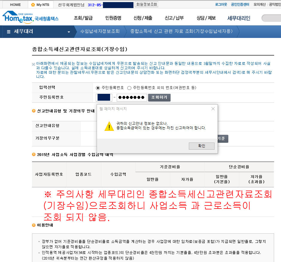 세무대리인 종합소득세신고관련조회 오류있을 수 있습니다.