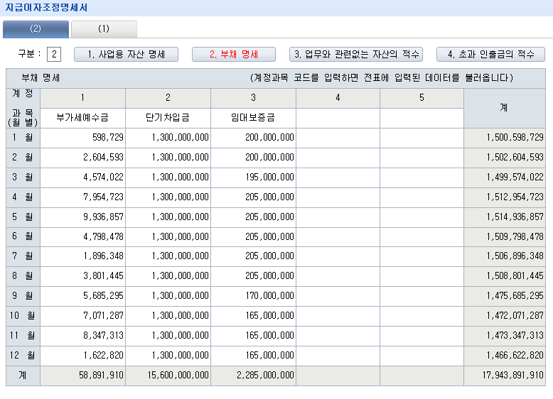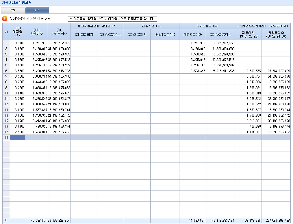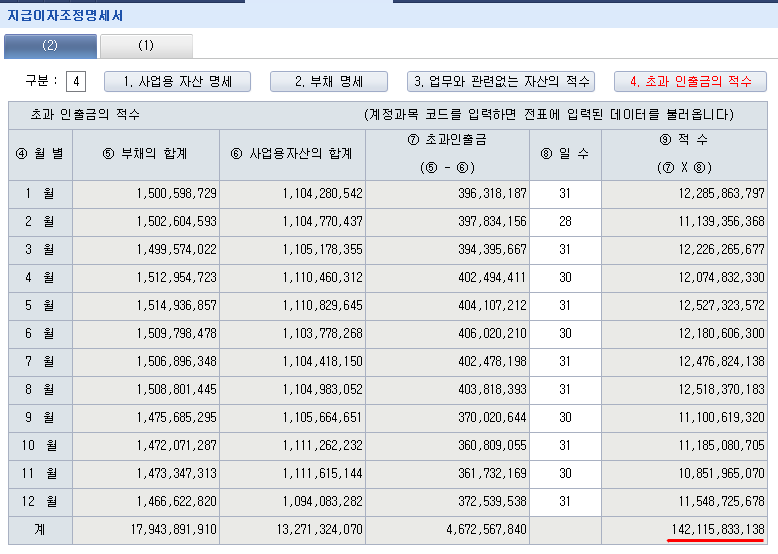 당해 과세기간 중 차입금의 적수