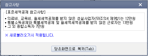 『※ 홈택스 작성방식에는 근로소득만 있거나 또는 근로소득과 다른 소득이 같이 있는 경우 특별세액공제(보험료,의료비, 교육비)와