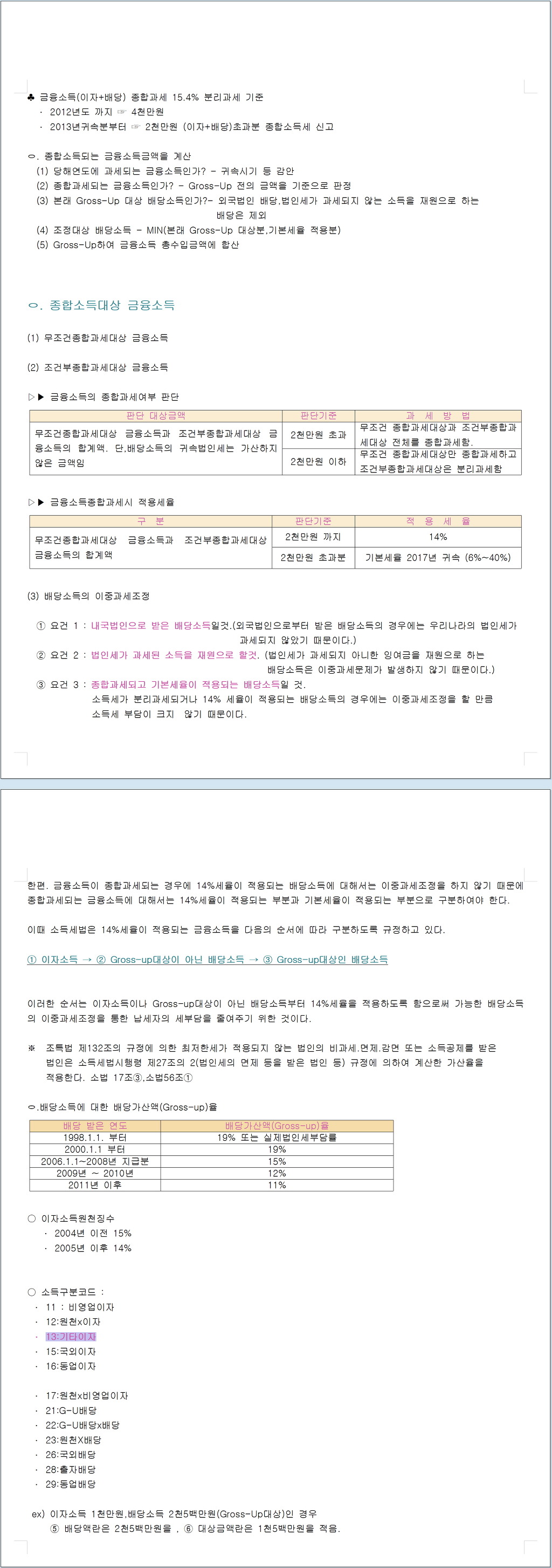 * 금융소득 종합과세기준금액: 2천만원(2012년 귀속까지는 4천만원)