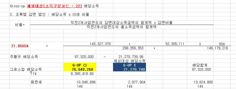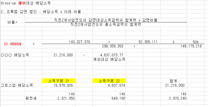 나. 배당가산(Gross-Up) 하지 않은 배당소득: 22
