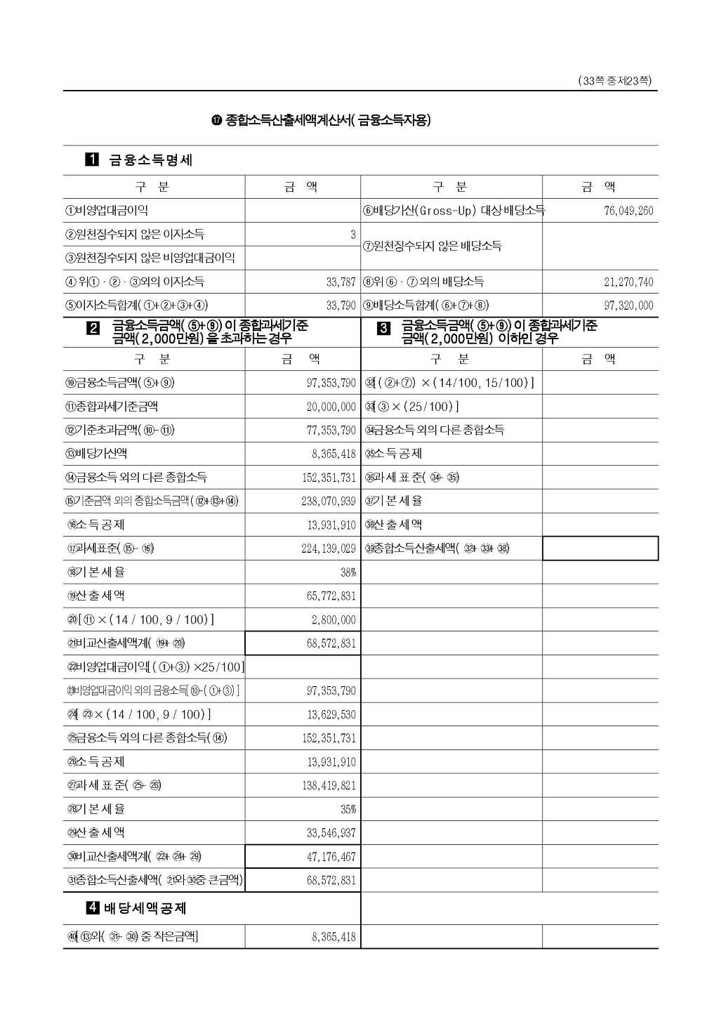 다. 「소득세법」 제127조에 따라 원천징수되지 않은 배당소득: 23