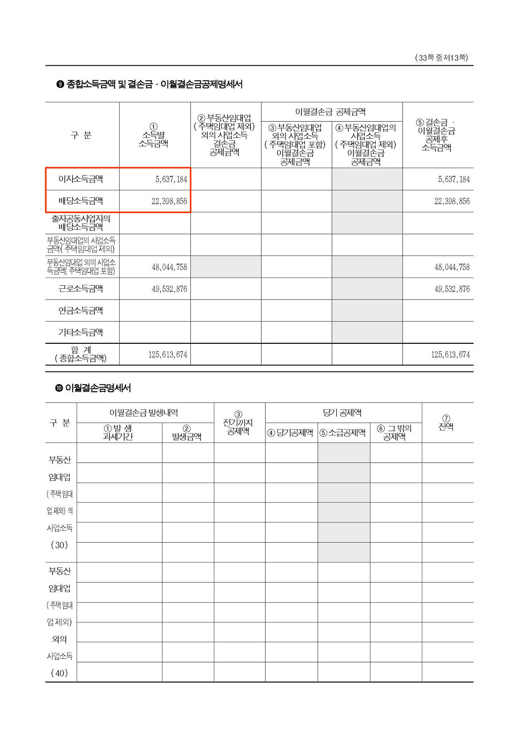 1. 이자소득(이자소득과 배당소득이 함께 있는 경우)