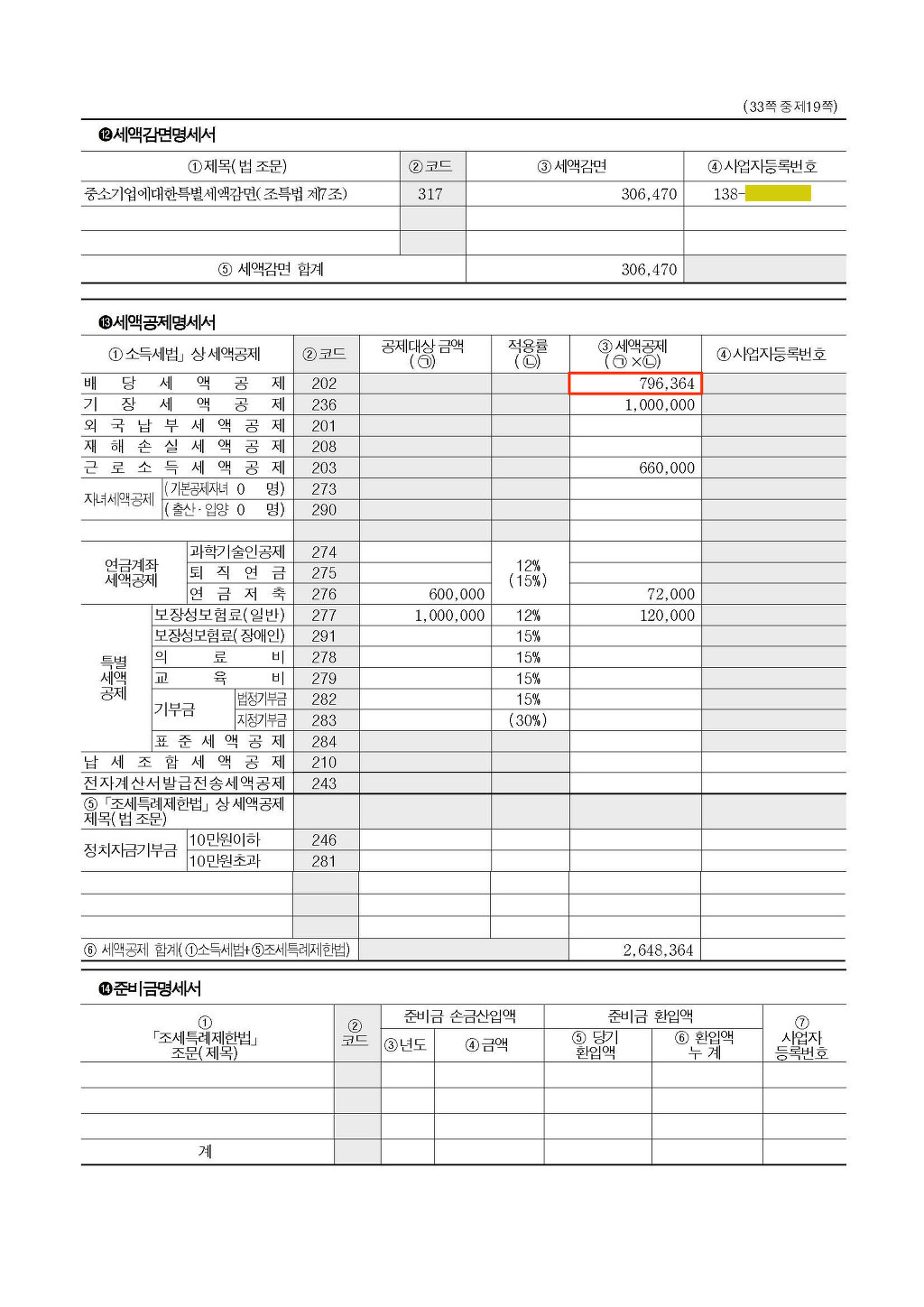 배당세액공제 대상금액:3,300,000원 (한도액은 별도계산)