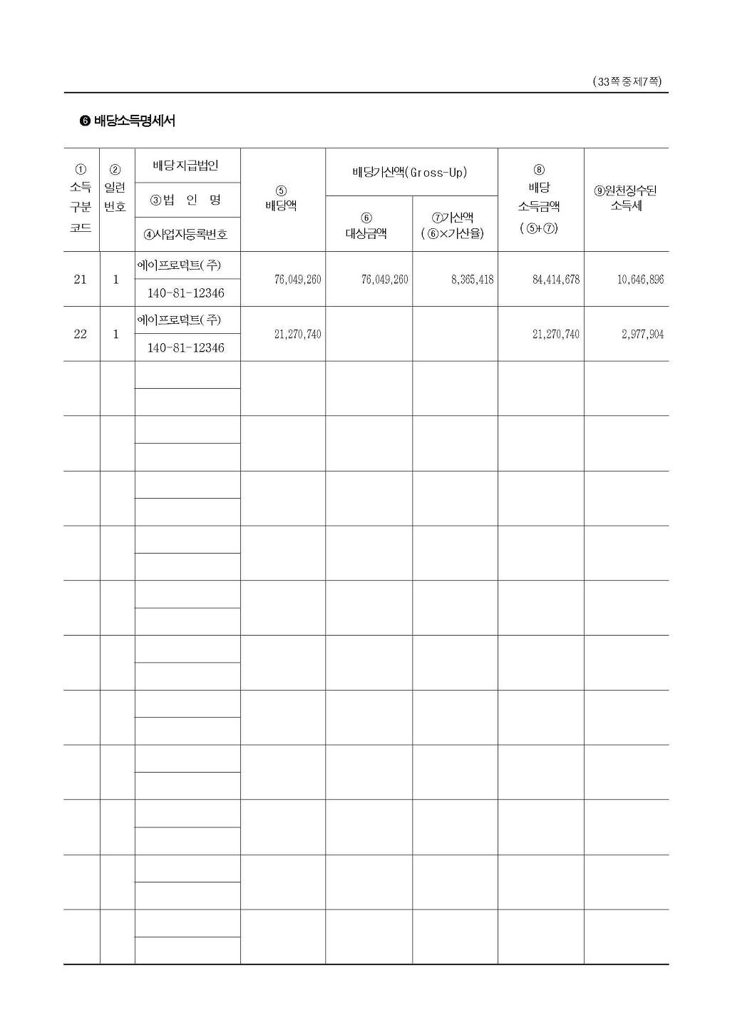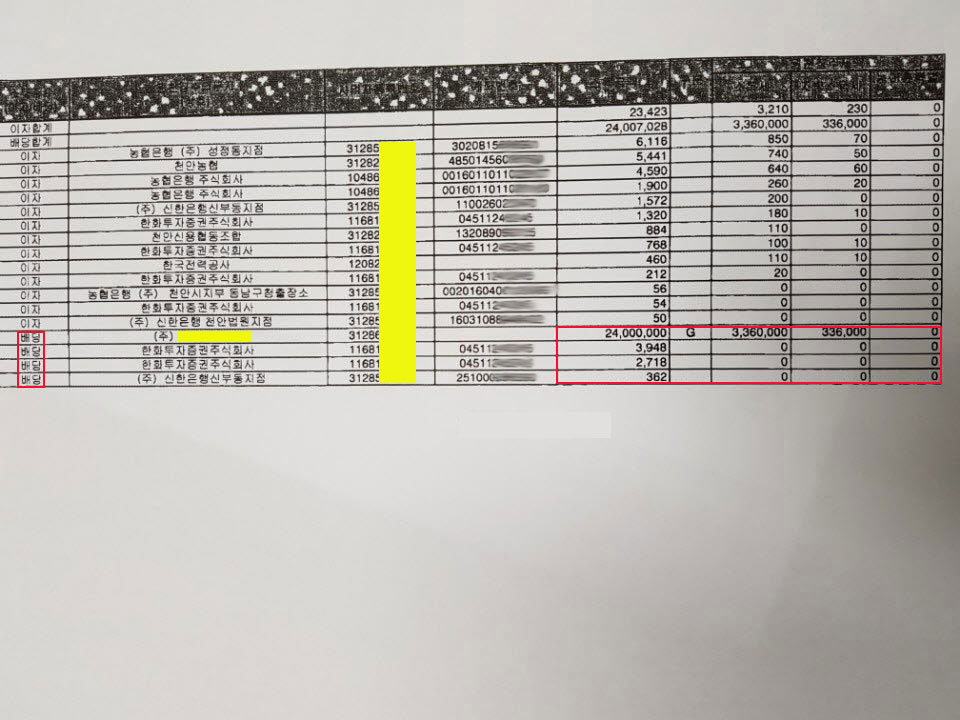 [A] > 2천만원 : 21번 각각의 배당액 입력