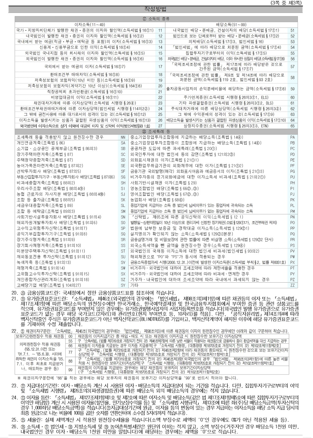 3. ② 일련번호란은 소득구분 코드별로 일련번호를 적으며, 코드별 일련번호가 둘 이상인 경우에는