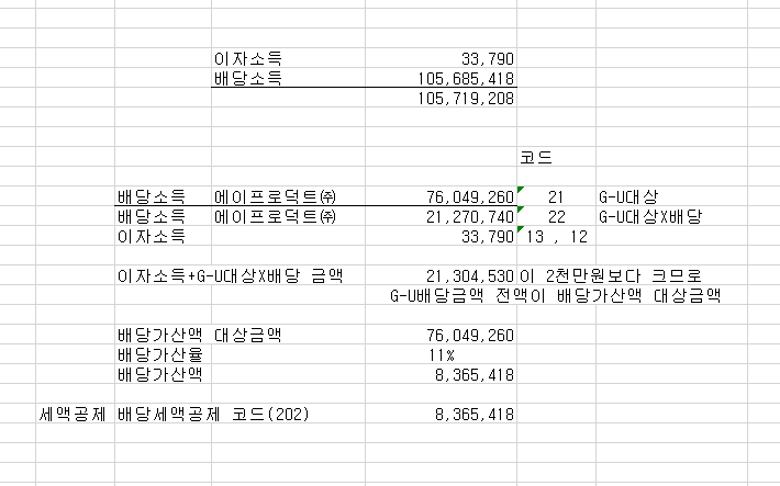 오류내용이 발생하면 배당가산액대상금액을 계산식대로 계산하시어 입력해주셔야 합니다.