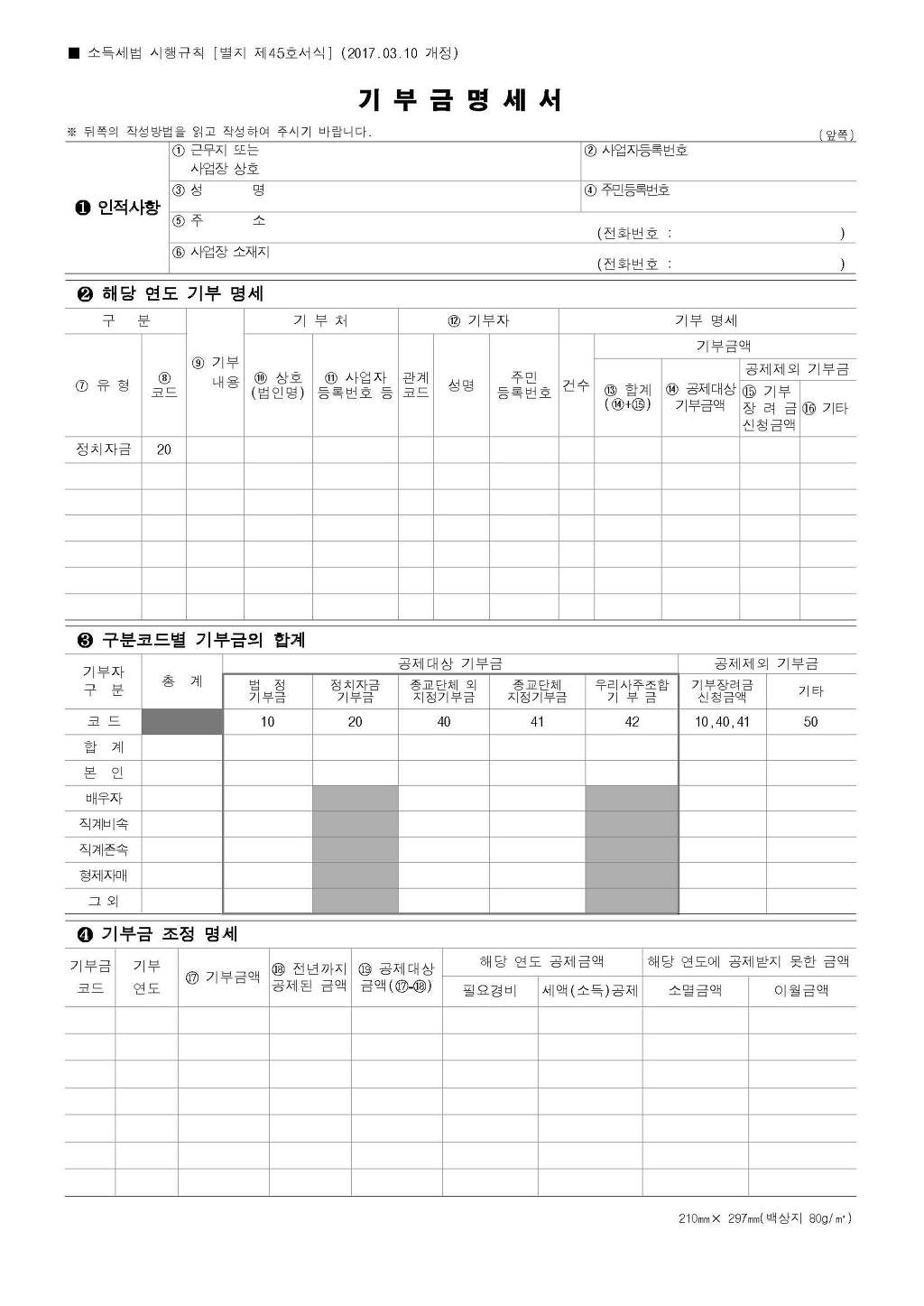 기부금명세서 소득세법 시행규칙 [별지 제45호 서식] (20170310개정).hwp