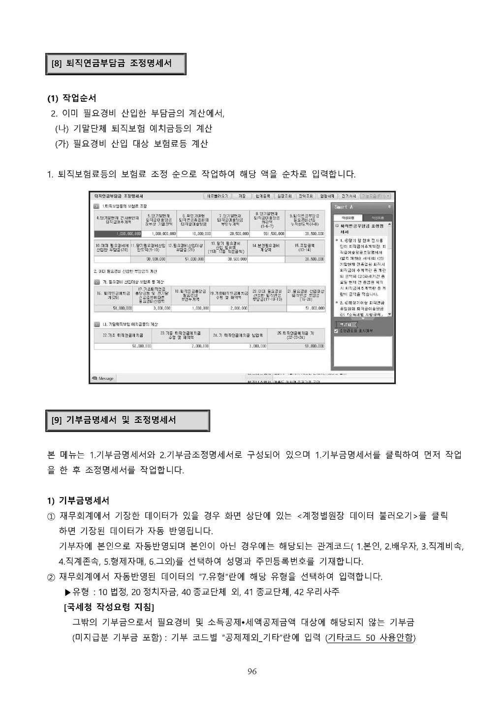 9. 기타란: 그 밖의 기부금으로서 필요경비 및 소득공제ㆍ세액공제금액 대상에 해당되지 않는 기부금액을 적습니다. 이 경우 미지급분 기부금액의 경우도 기타란에 적습니다.
