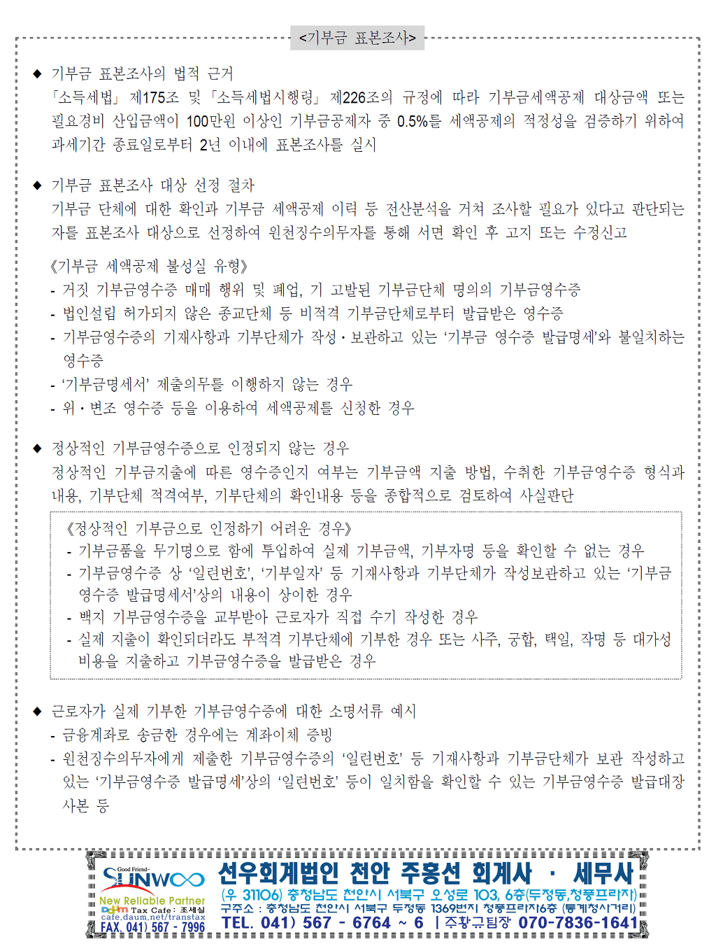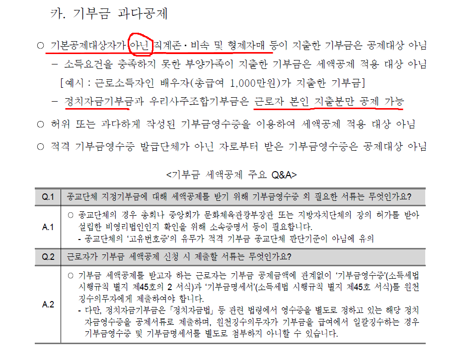1. 법정기부금 또는 정치자금기부금(「조세특례제한법」 제76조)