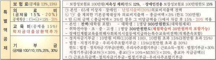 한도액 = (해당 과세기간의 소득금액-기부금등 합계액 주2) × 10% + 다음㉠,㉡ 중 적은금액 【㉠(해당과세기간의 소득금액-기부금등 합계액)× 20%, ㉡종교단체 외에 지급한 금액】 |