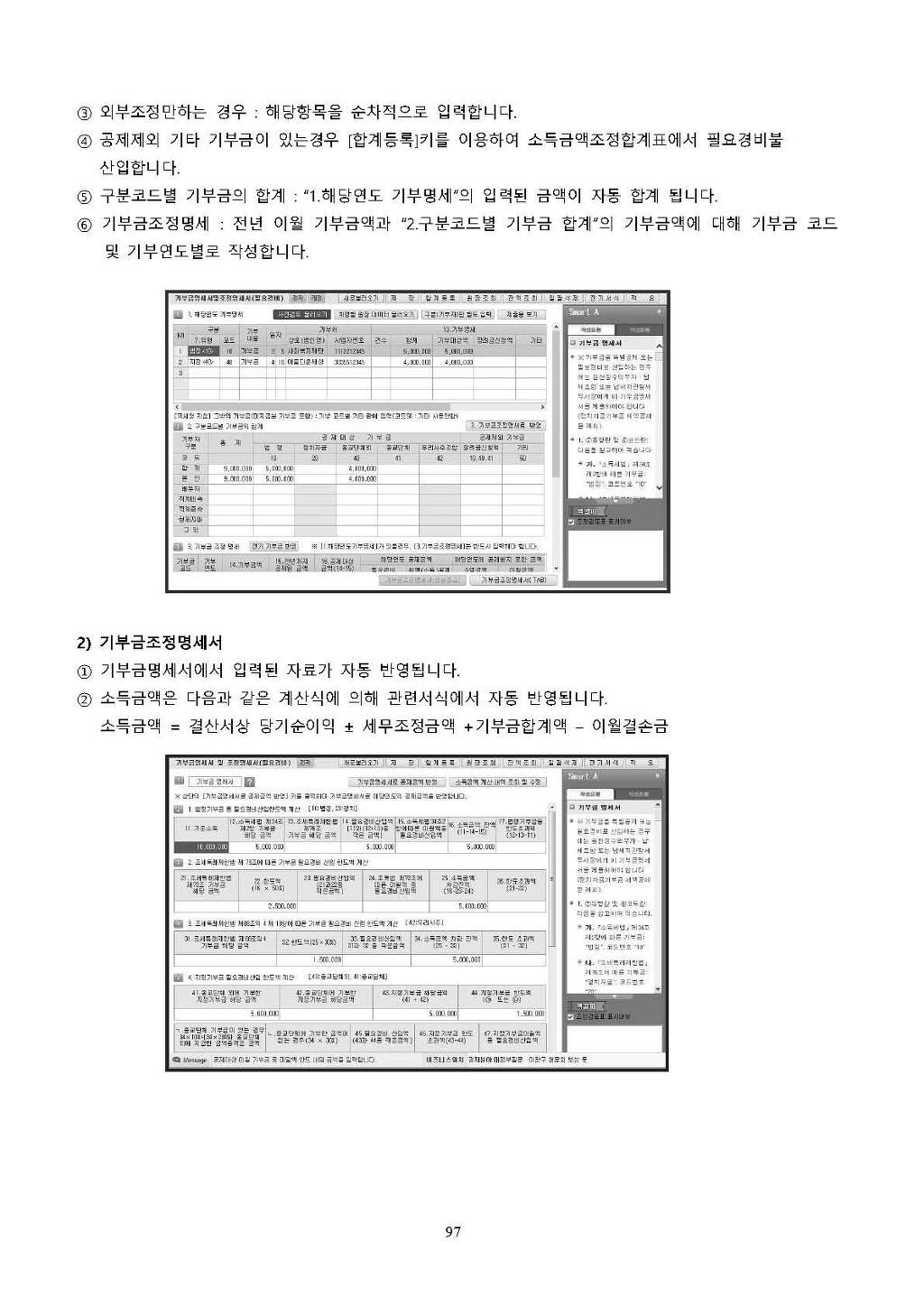 ※ 기부금을 특별소득공제ㆍ특별세액공제 또는 필요경비로 산입하는 경우에는 원천징수의무자ㆍ납세조합 또는 납세지관할세무서장에게 이 기부금명세서를 제출해야 합니다.