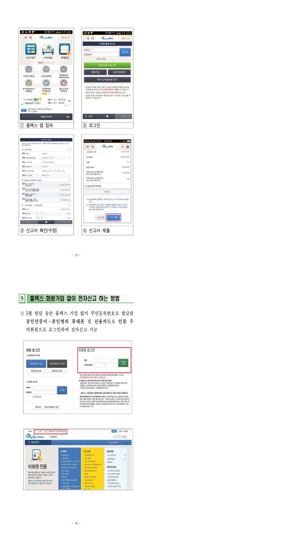 * 휴대전화 및 신용카드 인증 로그인(비회원)은 종합소득세 신고기간(5.1~5.31) 동안만 가능