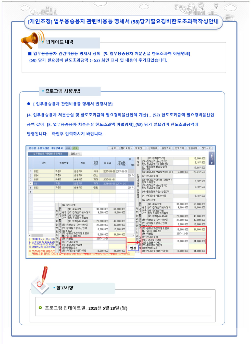 | 프로그램 사용방법 | | 질문 | [종합소득세신고서] 기장세액공제가 안불러옵니다. | | 답변 | 간편장부대상자가 복식부기로 신고하는 경우 반영됩니다. * [종합소득신고서] - 소득금액탭의 기장의무가 간편장부로 선택되어있어야합니다. | | 질문 | [종합소득세신고서] > 종합소득세액계산 탭 > 세율이 표시되지 않습니다. | | 답변 | 금융소득이 있는 경우 금융소득세액계산 탭에 비교 산출내역 으로 반영되므로 종합소득세액계산탭에 세율은 표시되지 않습니다. | | 질문 | [소득공제신고서] > 3.기타공제 탭 > 소기업.소상공인 공제부금 금액 입력시 공제액이 계산되지 않습니다. | | 답변 | [소득공제신고서]에서는 소득금액이 확인되지 않으므로 직접입력해주셔야합니다. [종합소득세신고서] > 소득공제등 탭 > 3. 조세특례제한법상 소득공제 란에서 115.소기업,소상공인 더블클릭하여 재계산 버튼으로 종합소득금액에 따라 '공제대상금액'이 자동계산됩니다. | | 질문 | [종합소득세신고서] > 결손공제및준비금 탭에서 사업소득에 대해서 결손공제가 안됩니다. | | 답변 | 신고유형이 추계인 경우 이월결손금공제할 수 없습니다. 단,천재지변 기타 불가항력으로 장부 기타 증빙서류가 멸실되어 추계결정하는 경우에는 공제할 수 있습니다. 그런 경우라면 [종합소득세신고서] > [소득금액] 탭에서 하단 이월결손금공제여부 - 1.이월결손금공제로 하시면 이월결손공제 가능합니다. | | 질문 | [종합소득세신고서(단순경비율)] 기부금세액공제가 반영되지 않습니다. | | 답변 | 기부금세액공제는 연말정산대상 사업소득자(보험모집인,방문판매원,음료품배달원으로서 간편장부대상자)만 가능합니다. 업종코드를 확인해주시기 바랍니다. | | 질문 | [종합소득세신고서] 연금저축 세액공제가 소득공제신고서에서는 12% 공제했는데 종합소득세 신고서에는 15% 반영됩니다 [종합소득세신고서] 연금저축 세액공제가 소득공제신고서에서는 12% 공제했는데 종합소득세 신고서에는 15% 반영됩니다 | | 답변 | 종합소득금액이 4천만원 이하인경우 15% 공제적용됩니다. (소득공제신고서상 연극저축란에 가서 종합소득세신고서상 금액과 맞춰서 편집 가능합니다.) |