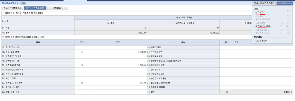 영수증수취명세서 신고일자 , 세무대리인 표시 - 간편장부신고 , 복식장부신고 이상자 모두 작성 미작성시 가산세 1.1% 작성자EYEDI|작성시간18.05.25|조회수312 목록 댓글 0 글자크기 작게가 글자크기 크게가 다음검색 현재 게시글 추가 기능 열기 북마크 공유하기 신고 센터로 신고 댓글 댓글 0 댓글쓰기 답글쓰기 댓글 리스트