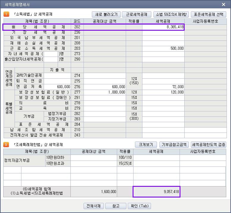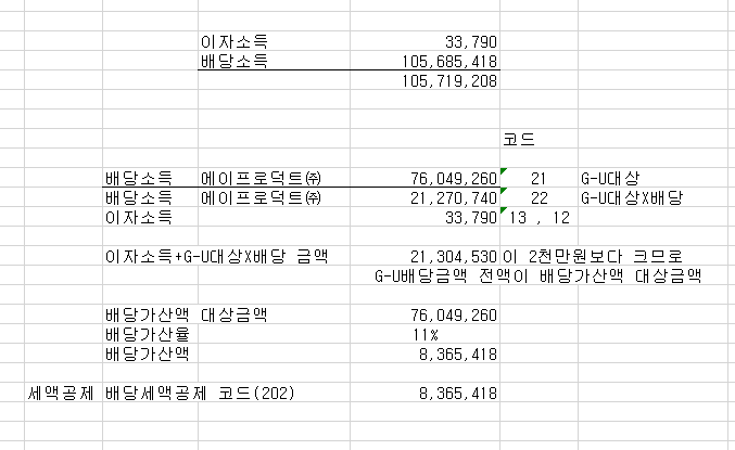 따라서 1, 2 중 적은 금액인 7,520,000원이 배당세액공제금액이다.