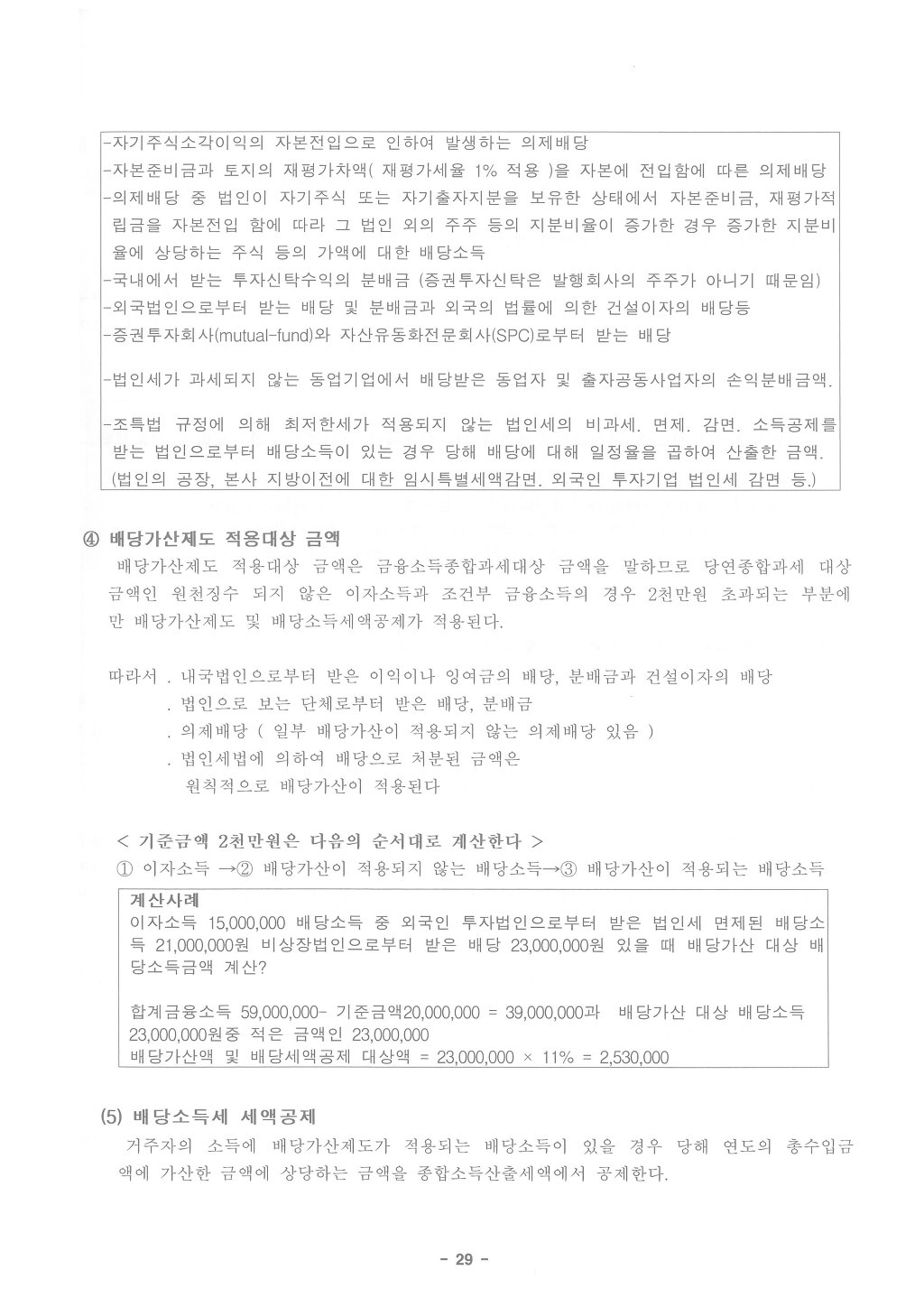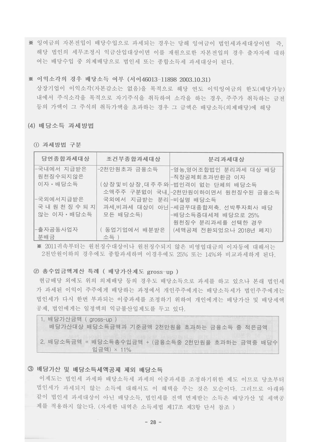 배당가산(그로스업 Gross-up) 11%세액공제 및 배당소득세액공제 제외 배당소득 / 법인의 공장 및 본사를 수도권 밖으로 이전하는 경우 법인세 등 감면 주의